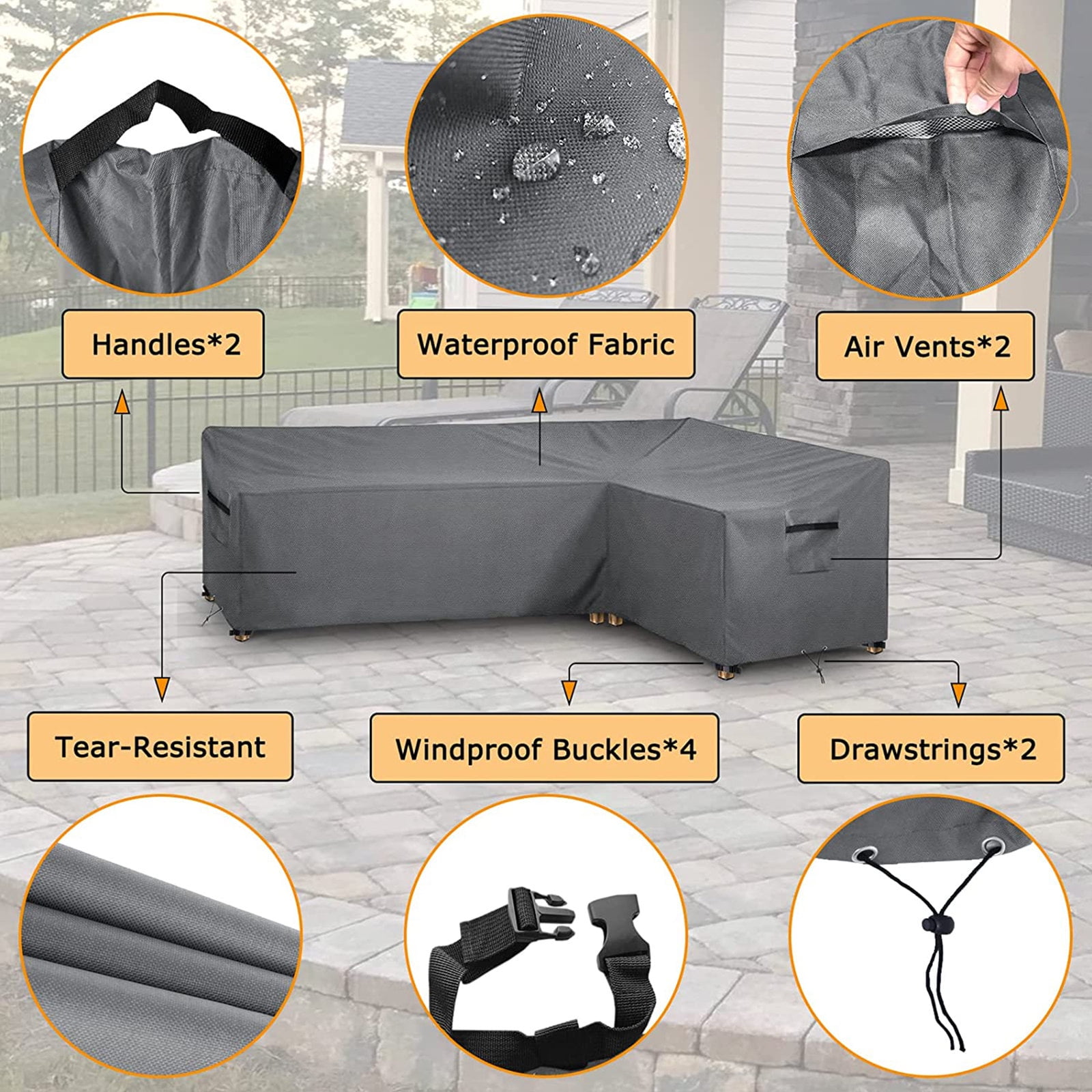 STARTWO Patio L-Shaped Sectional Sofa Cover Thickened Heavy Duty Outdoor Waterproof Furniture Cover With Air Vents & Windproof Straps