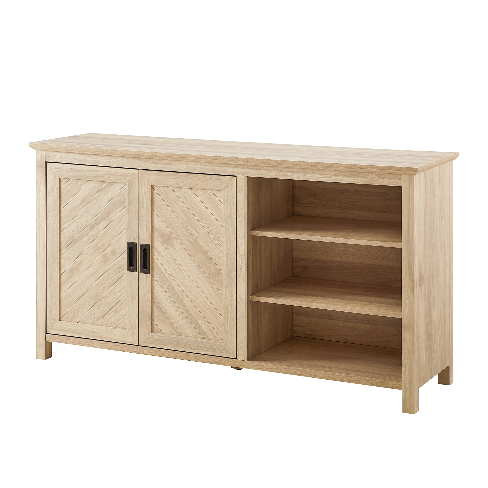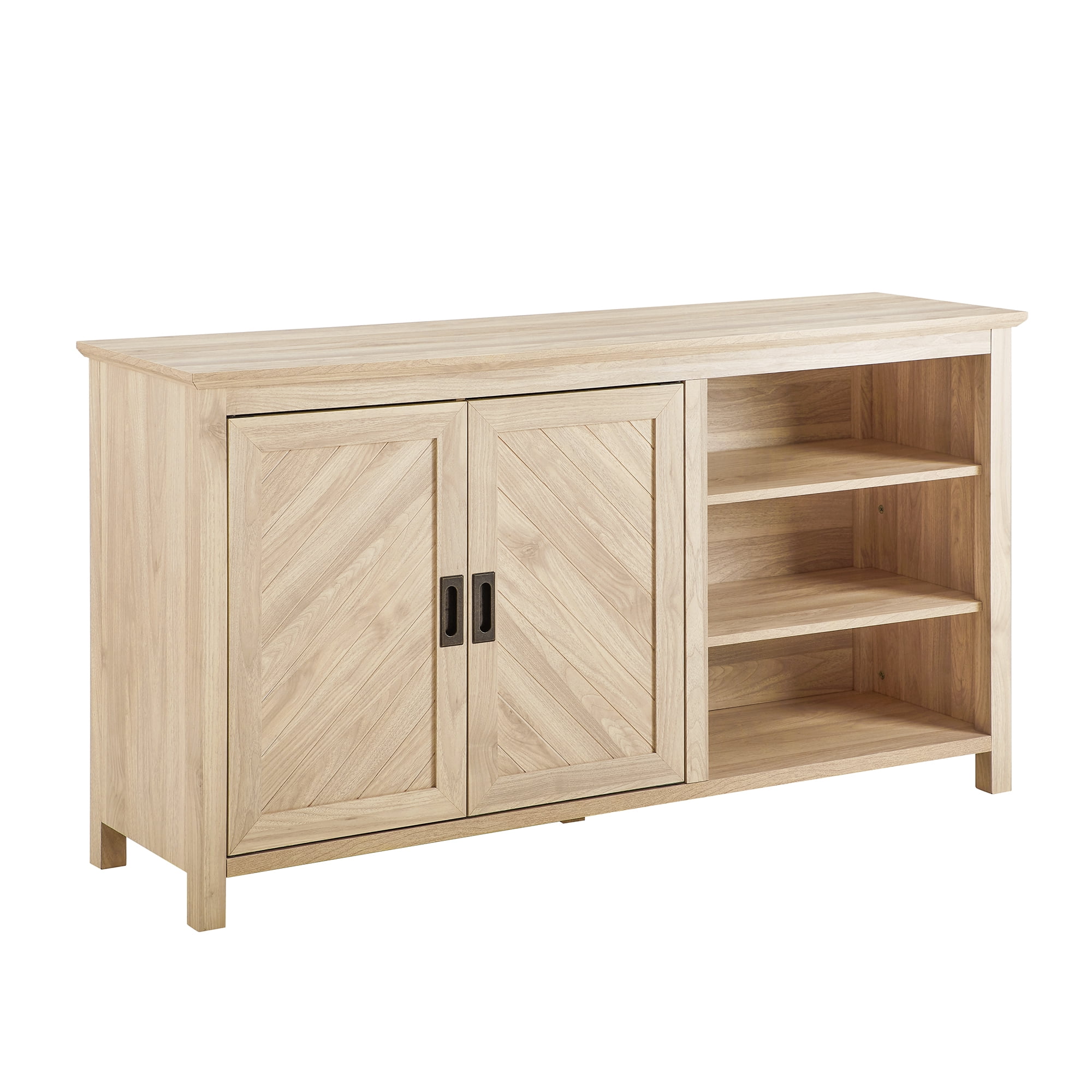 Hosting game nights just became so much simpler with the Stayton Birch Transitional 2 Door Sideboard by Walker Edison. Two doors hide two adjustable shelves that make the perfect home for board games, blankets, or movies. Display family photos and your favorite novels on the two open storage adjustable shelves to show off your great taste. And the angled grooved door fronts provide transitional taste to complement your coastal or farmhouse taste. Place your TV up to 65 inches on the side top surface to host perfect watch parties and movie marathons.