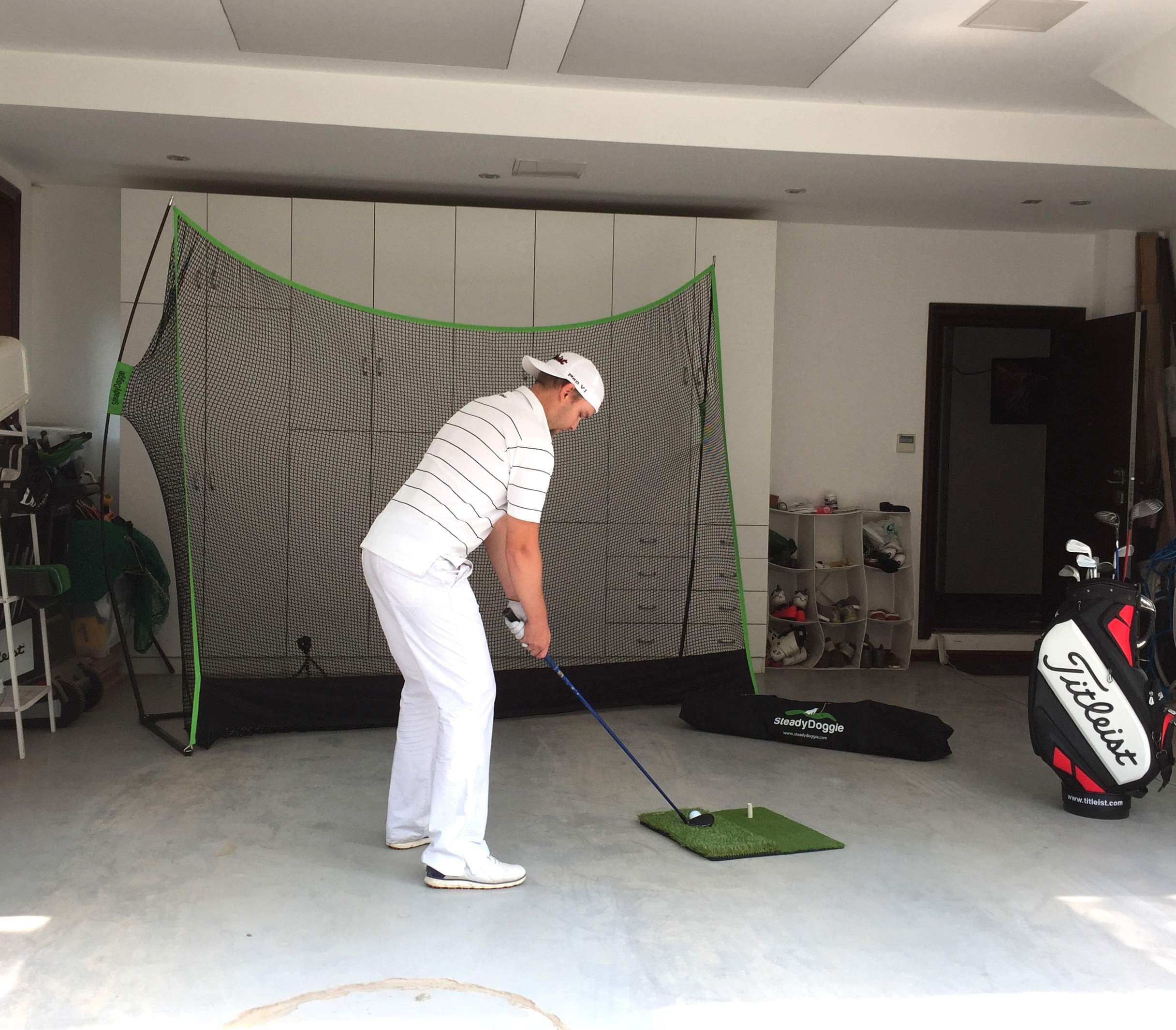 Practice Your Golf Swing Anywhere You don’t have to get in the car and drive to the driving range or the course to practice your golf game anymore! Add to Cart to set up a driving range in your backyard. Please note dimensions. The Perfect Golf Game Practice Setup! This four-piece set is lightweight, convenient, and durable. The 3/4 inch meshed net is of 5-ply knotless high-performance polyester, the frame has a thickness of 1.2mm of high-grade steel and along with the turf mat, fits together into a handy carry bag. Setup and takedown are less than two minutes and the net’s extra large coverage zone makes it safe for use indoors or outdoors. If you need to practice at home or you can’t make it to the driving range, this golf net practice set is for you! The dual turf golf mat with a nonskid rubber base comes with a 2.3-inch rubber tee and provides the real feel of driving from the tee box and hitting shots off the fairway and from the rough. You can therefore practice from any lie with ease. The net has a safety shield that prevents errant low balls from hitting the horizontal ground bar at the back of the net. It also serves as a ball collect feature so you do not need to chase after practice balls. The 4 piece golf net bundle includes a chipping target that can be hung on any position on the golf net. You can set this up indoors or outdoors. You can set it up in your living room, garage, backyard, or office. Practice your golf game at any time and anywhere you like!