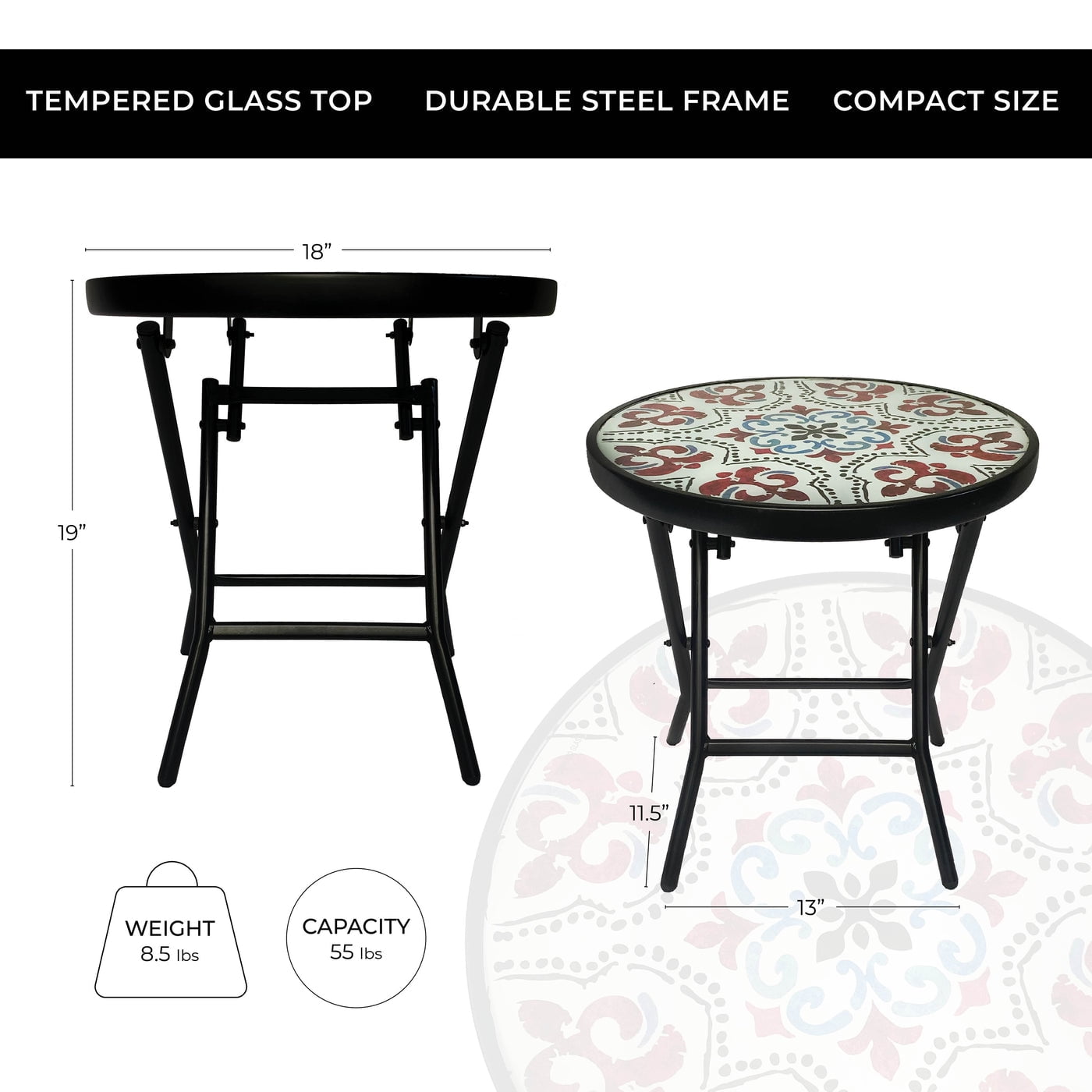 Steel Foldable Table – 18″