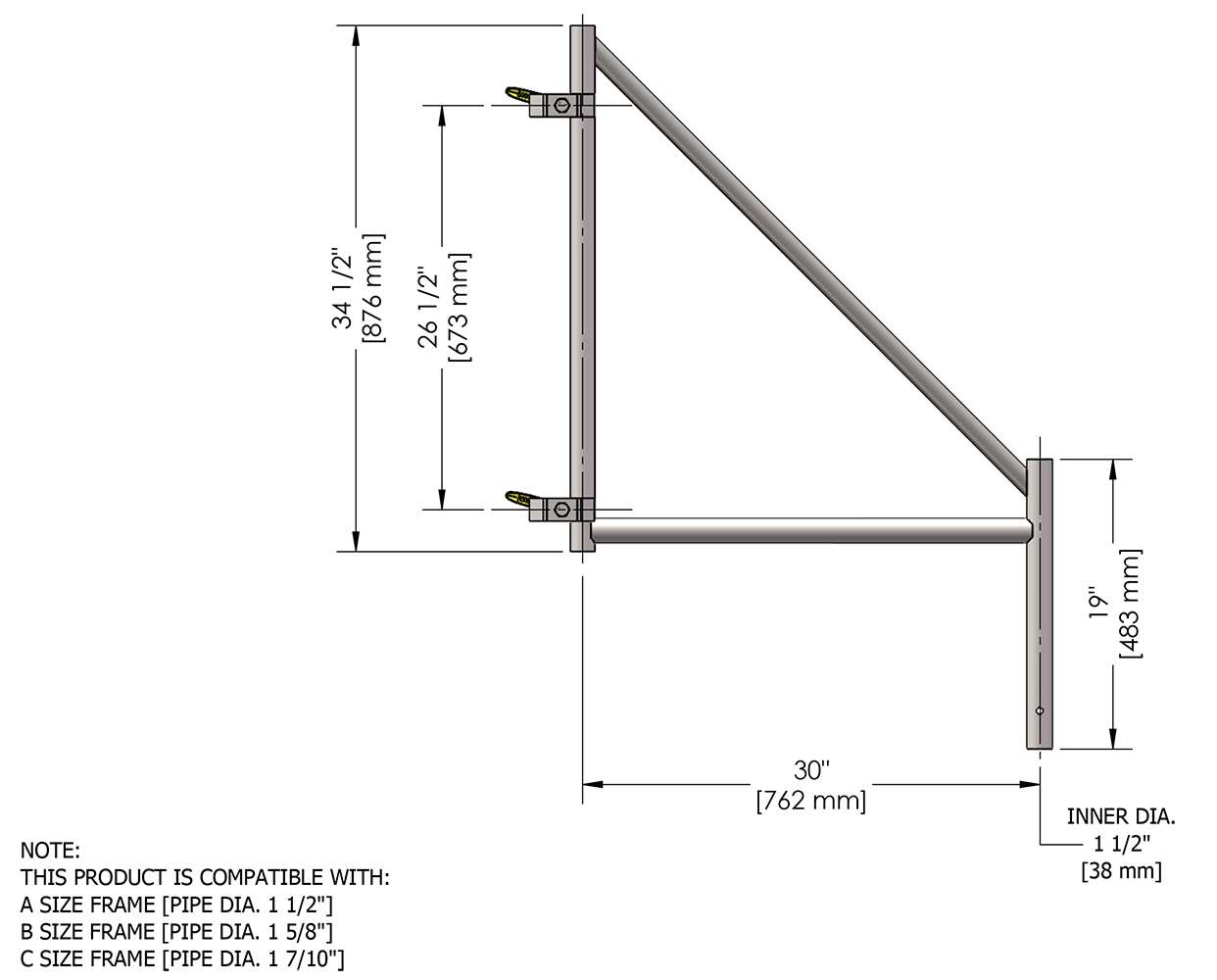Build Frames’ 30 in. Steel Heavy Duty Outrigger, used to Stabilize B and C Scaffolding Frame towers. These can be used to Build Frames’ Base Jacks (BPLJA12+BFL and BPLJBH+BFL) and rolling Caster (CAS8B+BFL). (Pack 4)