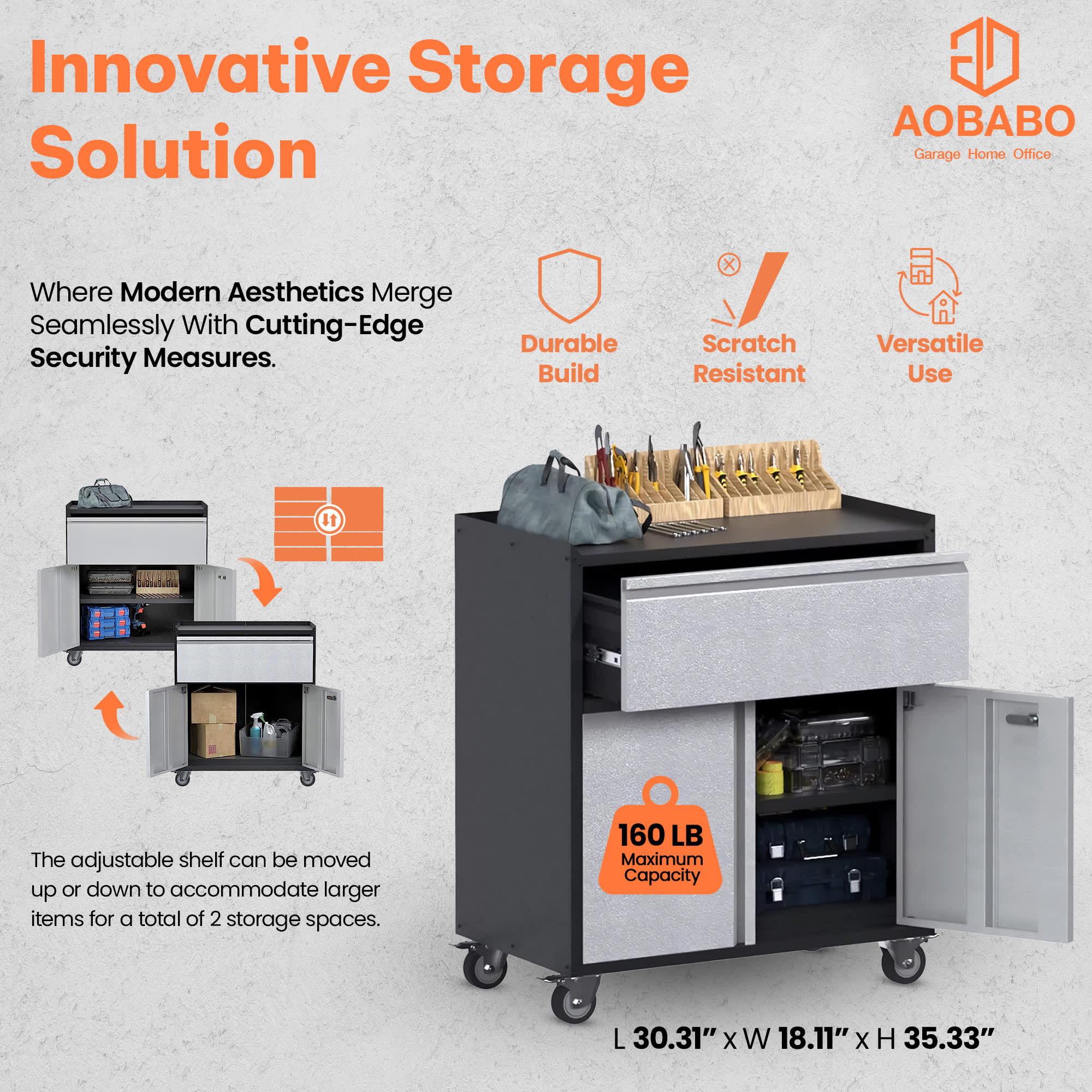 Steel Wheeled Lockable Tool Box Supply Cabinet Organizer with Drawer Adjustable Storage Shelves for Home Office and Garage Black/Gray