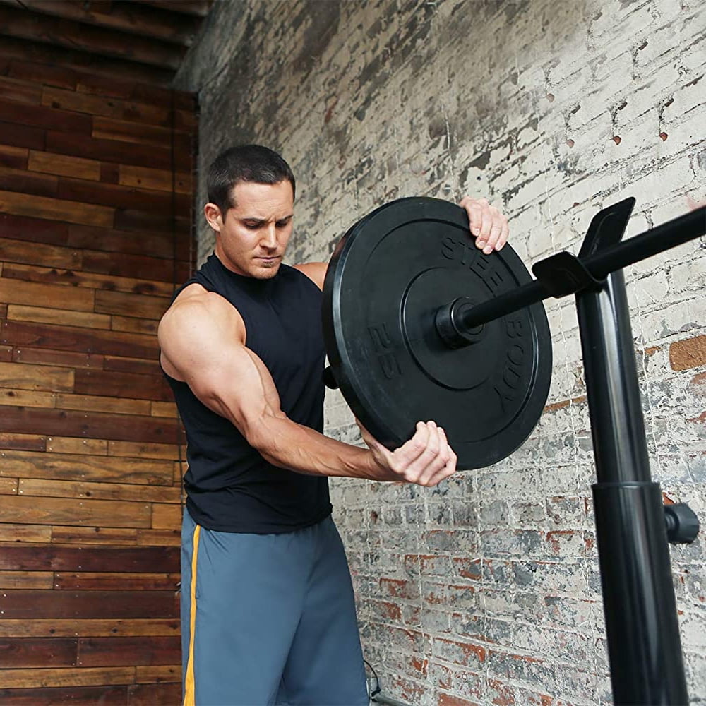 45-pound weight plate is ideal for versatile workouts to improve balance, muscle toning, and strength training Made of 100 percent solid rubber that is both dense and flexible to prevent plate fracturing caused by high-impact drops Designed with a 1.5-inch center sleeve and can be used with Olympic-sized bars Center sleeve has a stainless-steel construction to provide an easy transition from on and off the bar Use the weight individually to perform squats, lunges, deadlifts, and more Piece of equipment saves space in your home workout room, gym, or office area to easily access for a quick and convenient workout Material: Rubber Color: Gray Dimensions (W x H x D): 19 x 19 x 3 inches Weight: 45 pounds Manufacturer warranty: 2-year warranty