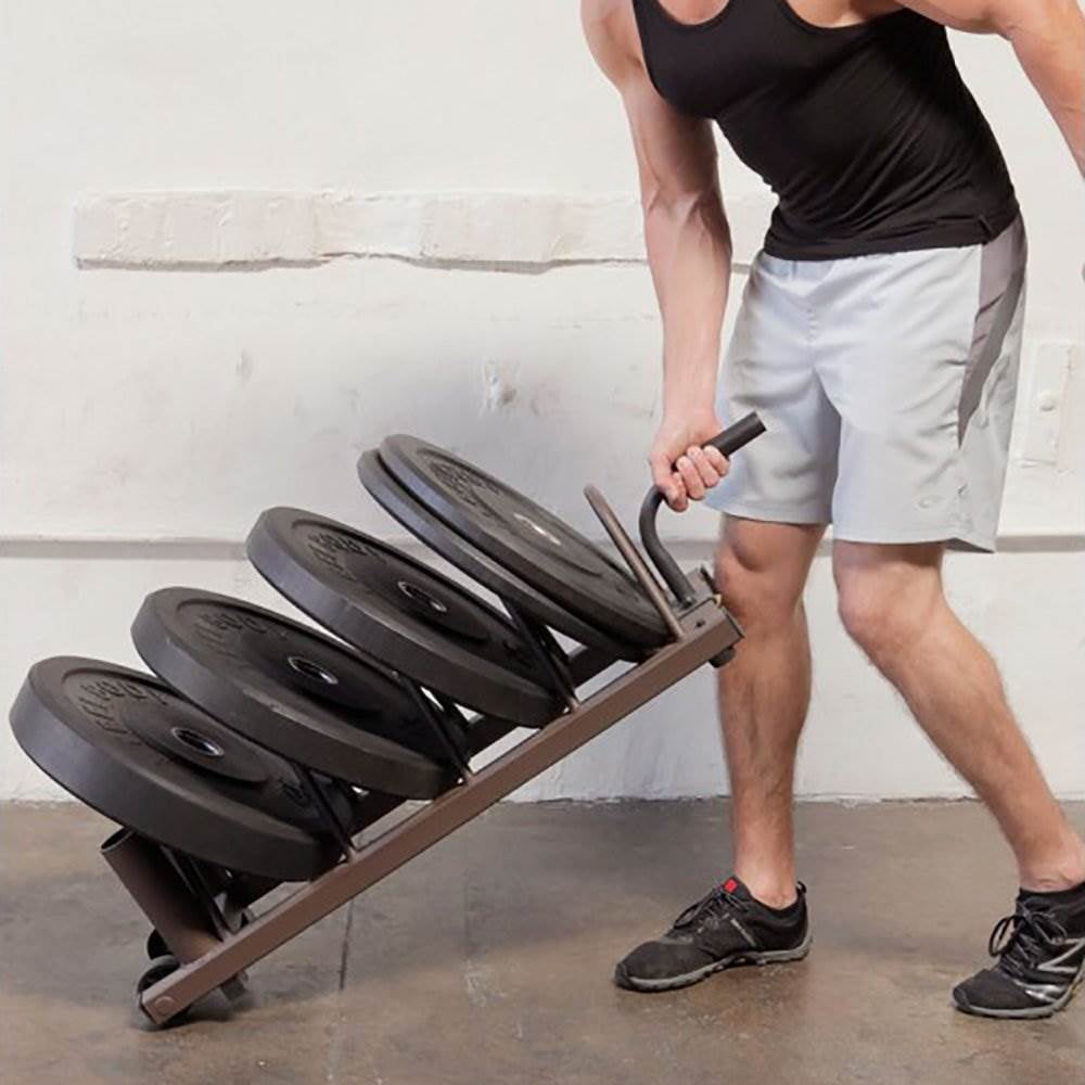 Keep your weight plates organized and easily transport them Durable powder coated finish Comes with attached wheels for portability Accommodates Olympic weight plates and 2 Olympic weight lifting bars Tough steel frame is resistant to moisture and damage Low profile design Weight capacity: 300 pounds Dimensions: 37 x 13 x 11 inches Manufacturer warranty: 2-year warranty