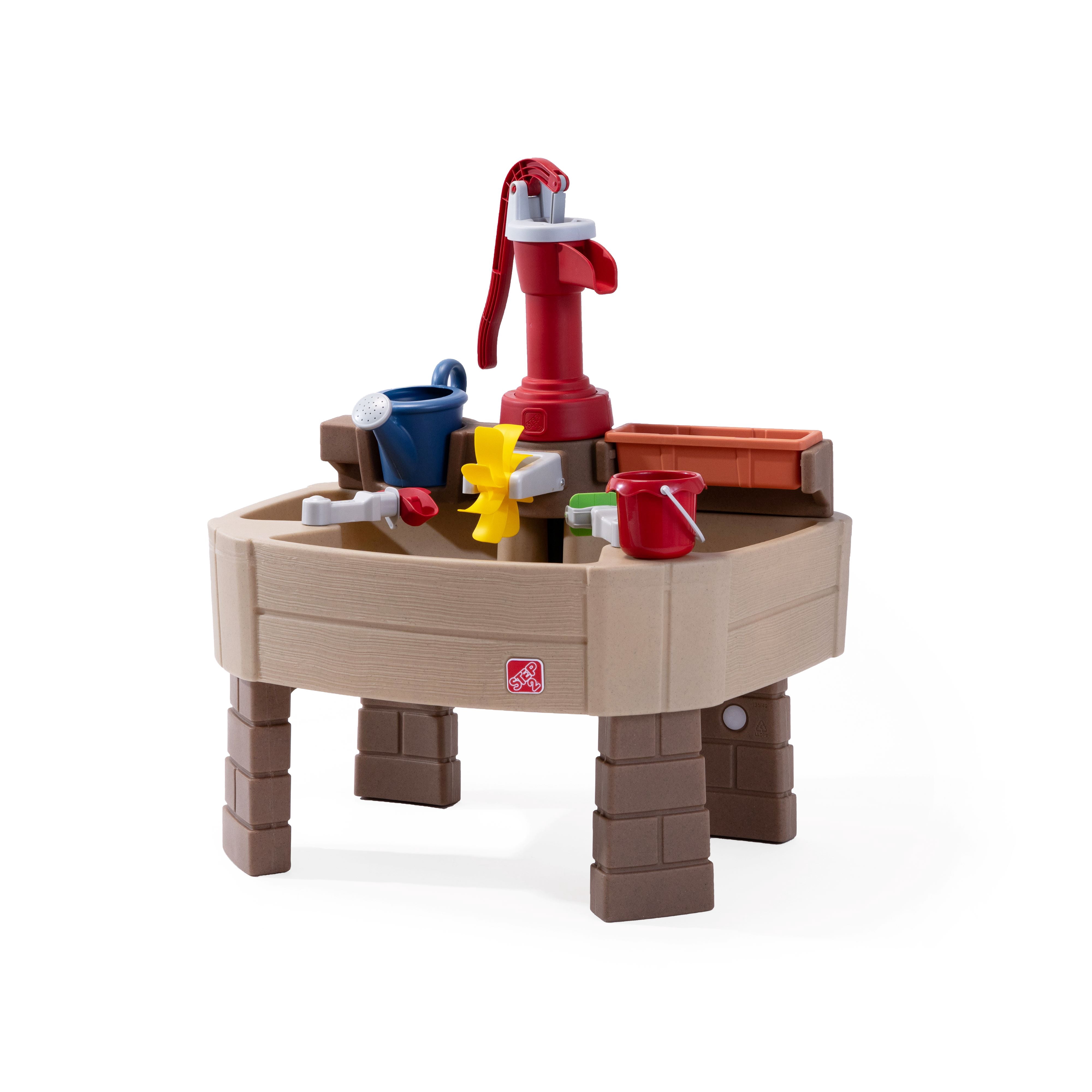 Step2 All Around Play Pavilion includes water, sand, and grill play for toddlers. Open design improves airflow and makes it easier to supervise children. Roomy enough for multiple kids—great for siblings or playdates. Durable plastic construction for outdoor use and easy cleaning. Ships to your home; not sold in store. Limited Warranty. Adult Assembly Required.