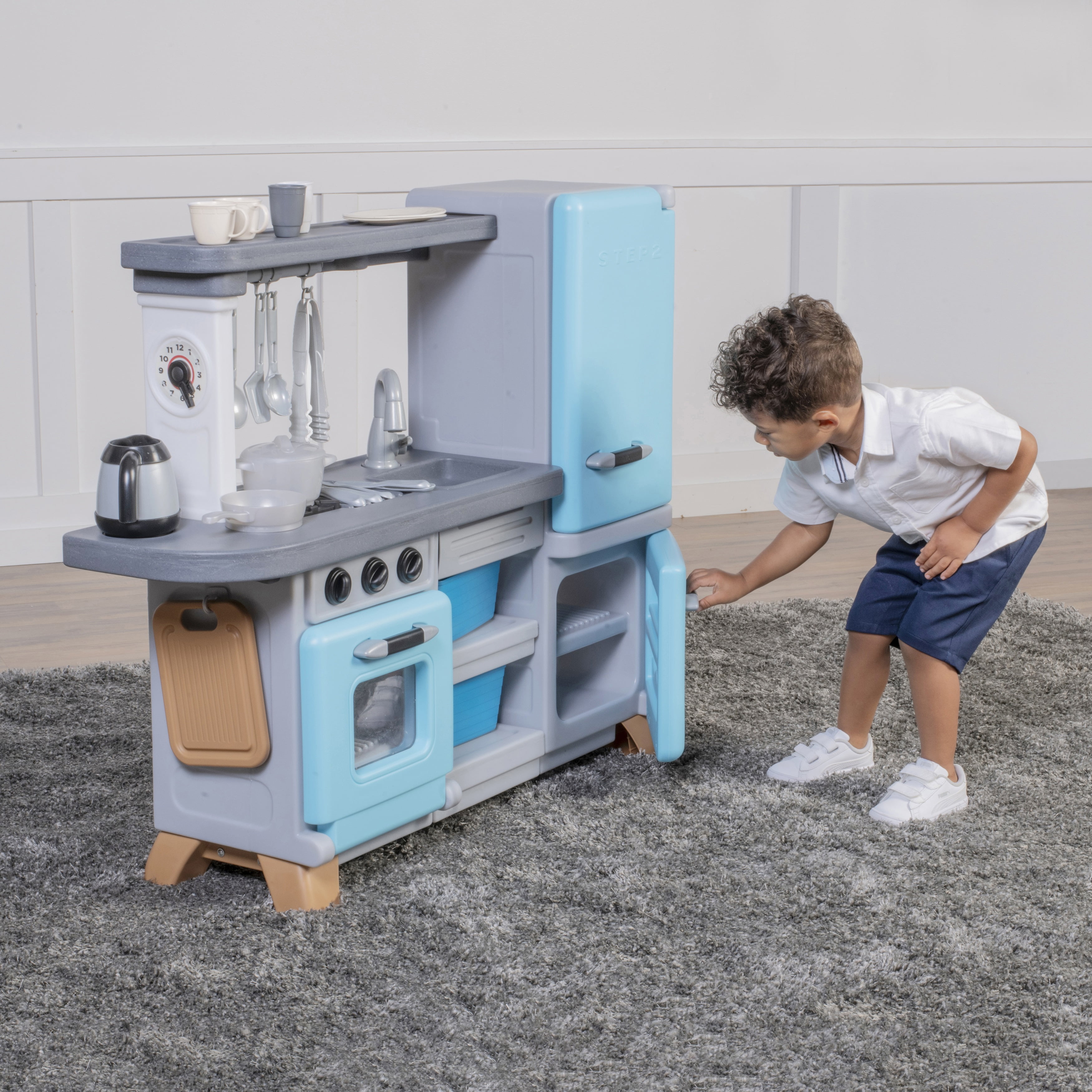 Step2 Blue Cooking Time Kids Pretend Kitchen Playset with Fridge