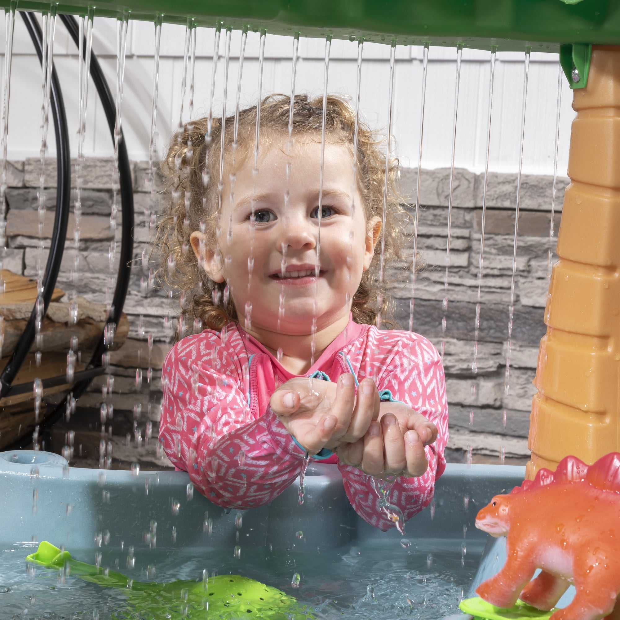 Create a mini water park right in your backyard with the Dino Showers Water Table™ by Step2. The two-tier toddler water table design creates a showering splash below! Just scoop up water from the pond and pour into the top tray to make it rain. Watch as the rainfall activates the maze-like spinners and ramps, a great way to show a cause and effect relationship. From the side flipper to the put-and-place maze pieces, kids will have lots of splish-splash fun with the included water table accessories! As an added benefit this toddler water table is eligible for: Pickup Today and Ship From Store to make your shopping experience more convenient!