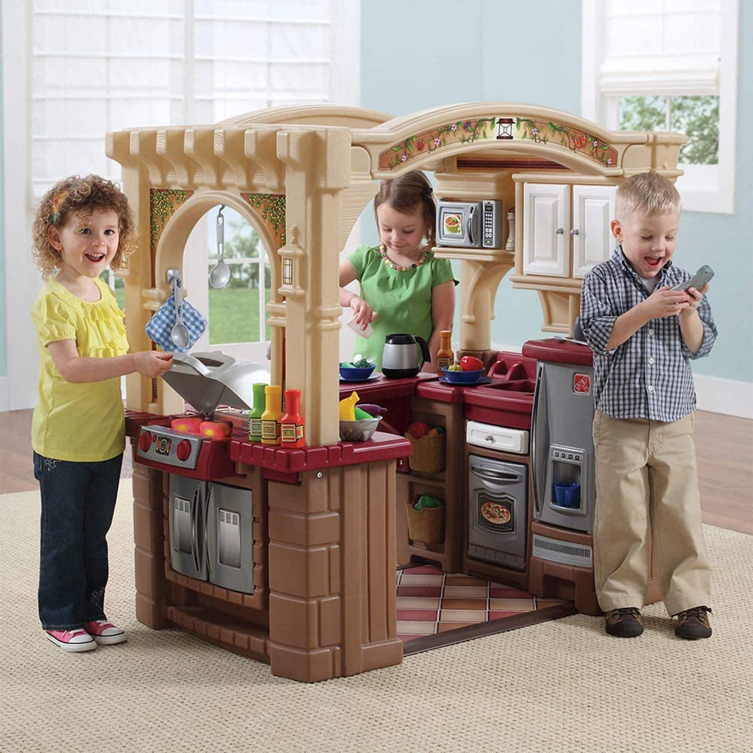 Step2 Grand Walk-in Kitchen Plastic Play Kitchen and Kid Grill, Brown
