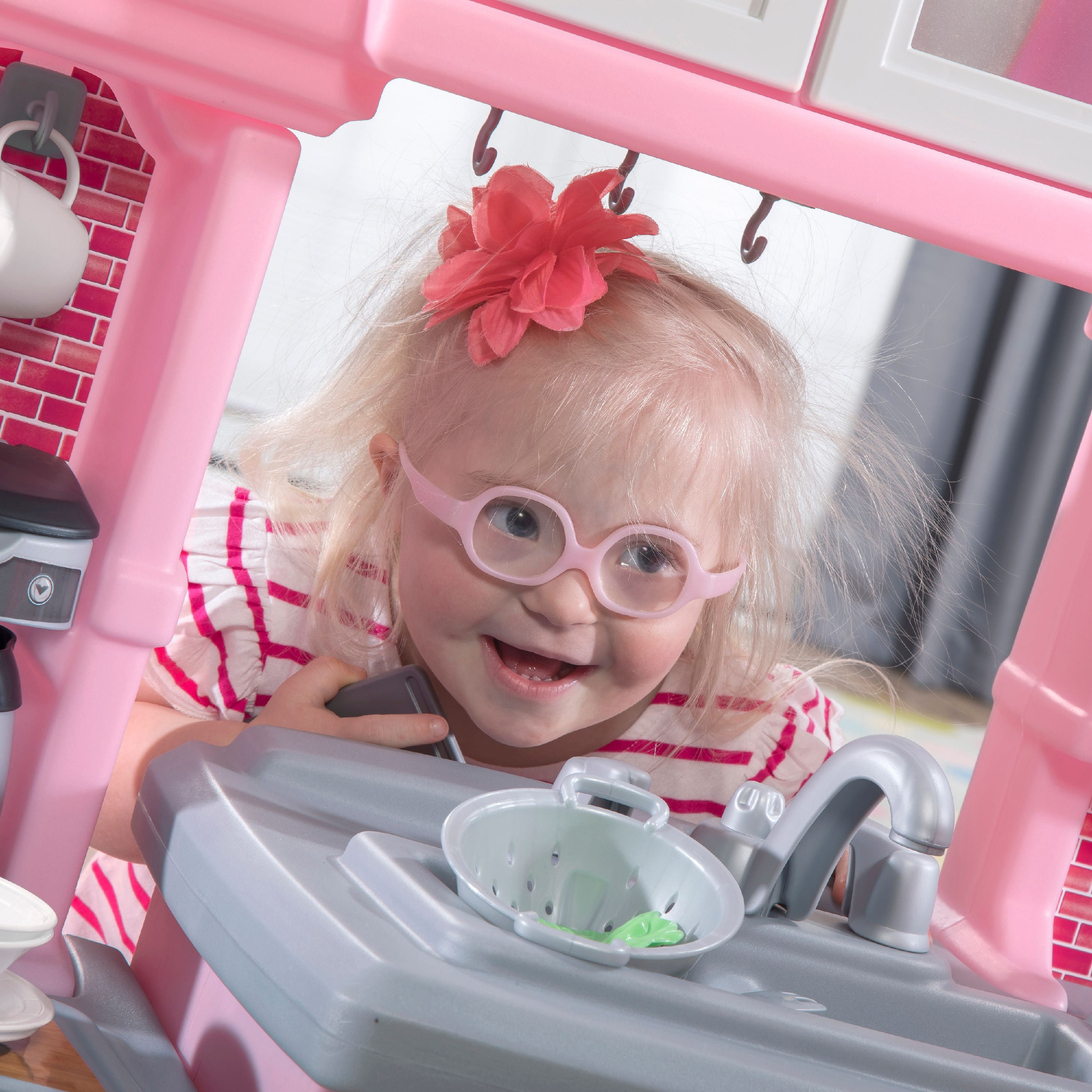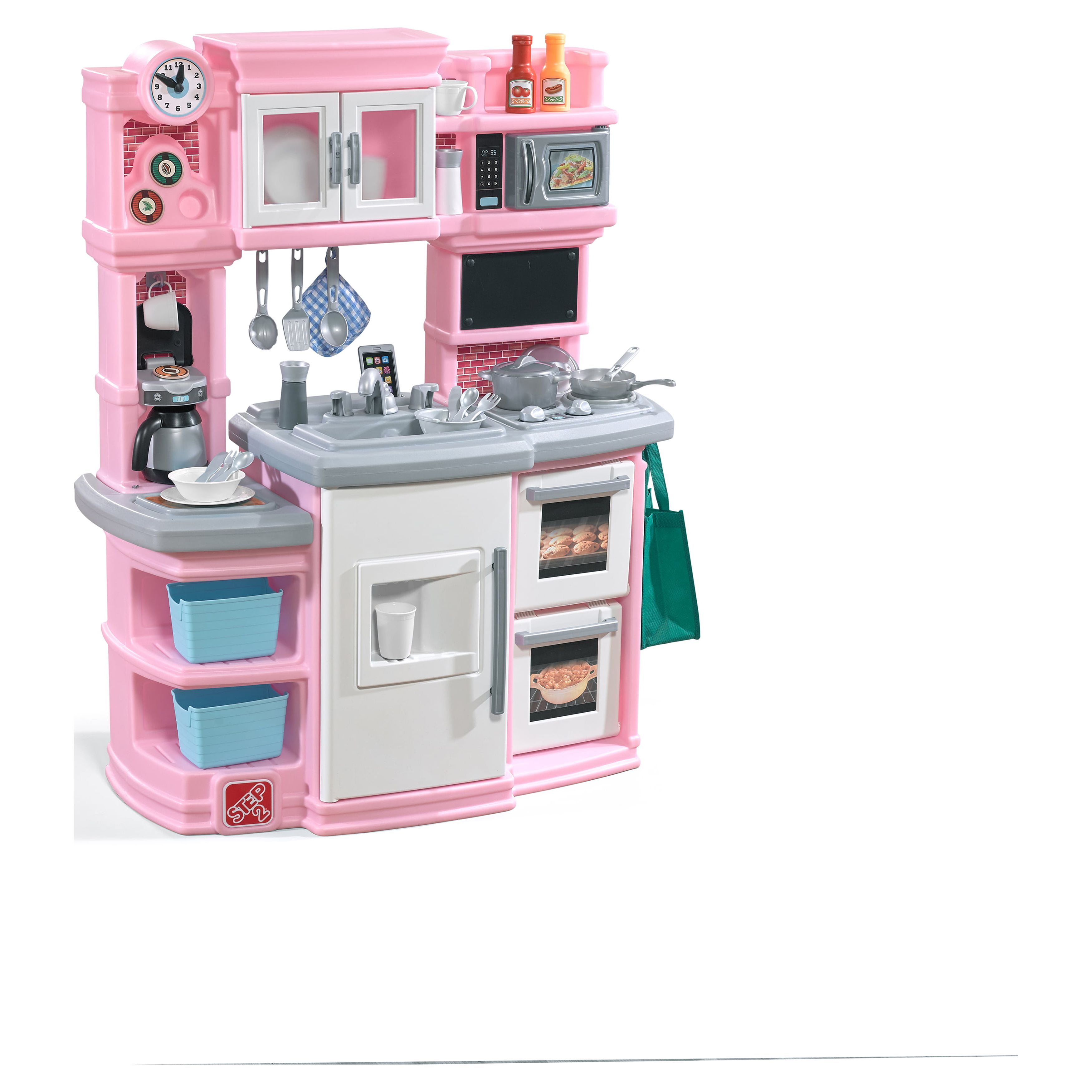 Little chefs will be whippin? up smiles for years to come with the Great Gourmet Kitchen ? Pink by Step2. This kid?s play kitchen features a modern design to match today’s home décor including a double oven for double the make and bake fun! With a large countertop, preschoolers will be able to share the pretend play fun of their play kitchen with friends. The imaginative play fun never ends with this Step2 play kitchen. Adult assembly required.