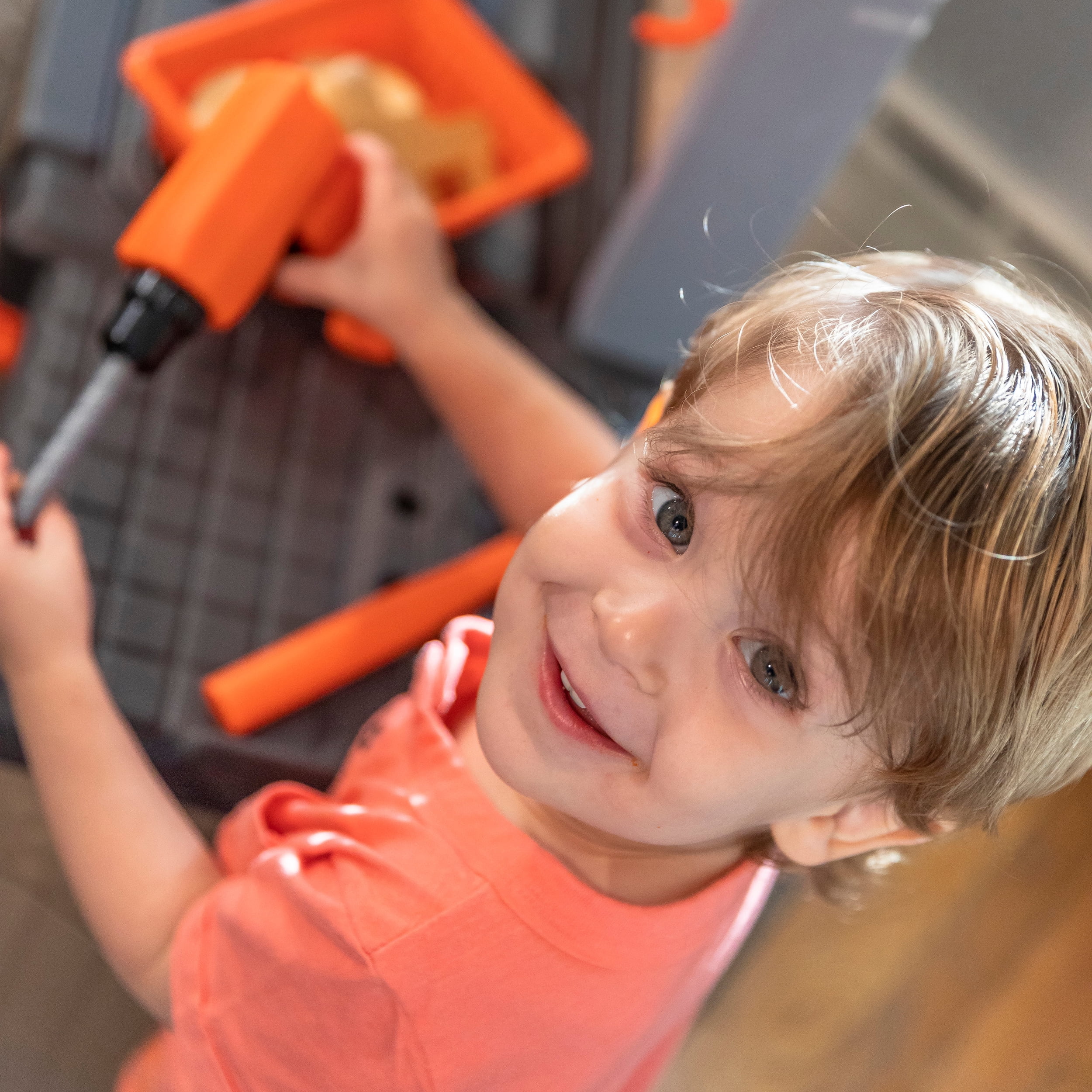 Watch as your little boy or girl build and repair their favorite toys with the Step2 Handyman Workbench! This kid’s tool bench can be used as an indoor or outdoor playset and provides a large work surface for all sorts of creative projects. Whether they are building a bookshelf or fixing a cabinet your kids will have fun playing with the 30-piece play tool accessory set (specifically the play drill)! Watch your toddler mimic you by trying to fix a sticky door using the included plastic hammer and screwdriver. As play time winds down this toddler tool bench includes four storage bins to assist with easy clean-up. The Handyman Workbench is designed for children ages 3 and up and is very sturdy. Lastly, this kid tool bench is made from strong plastics and comes with a 2-year limited warranty!