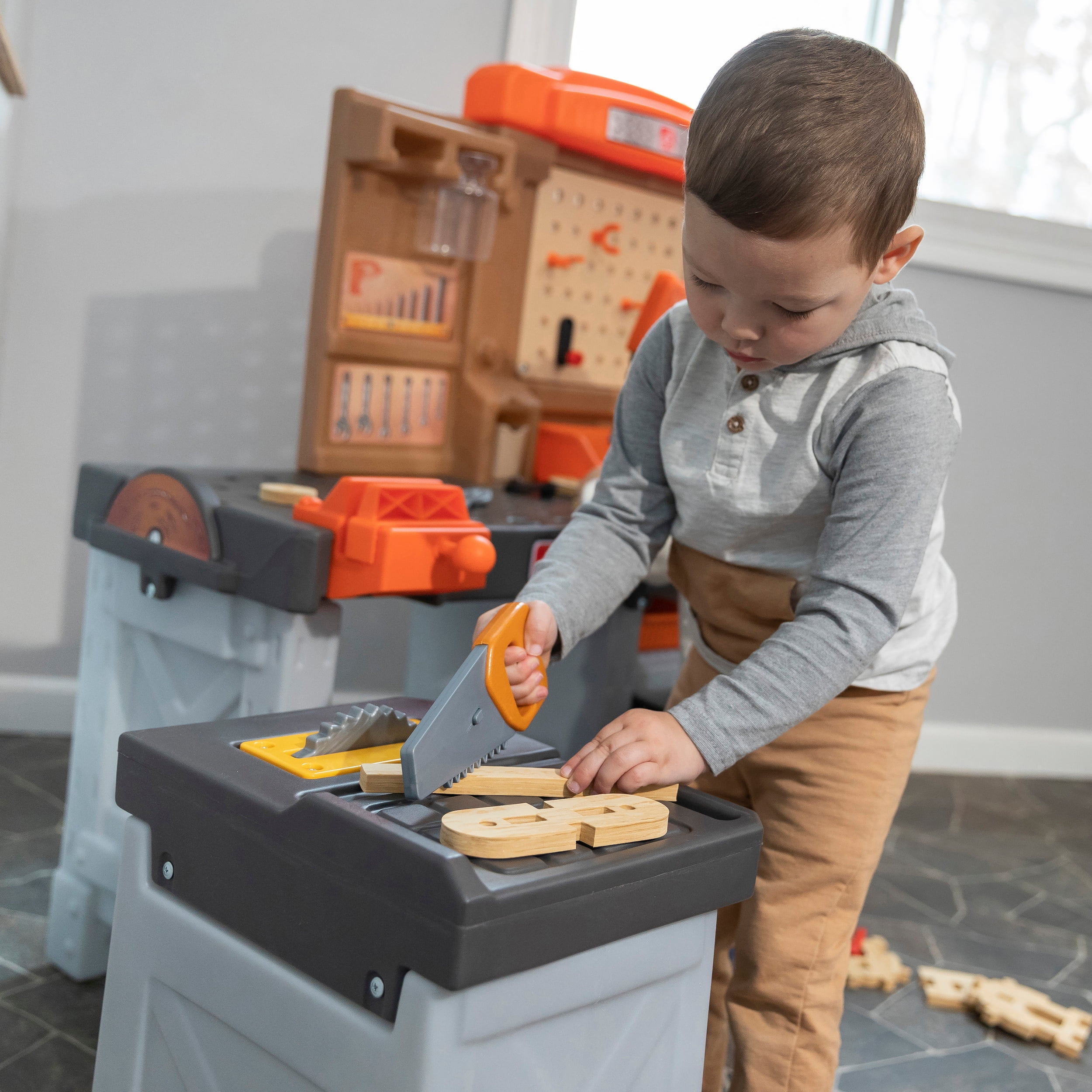 Step2 Pro Play Toddler Workshop & Utility Bench and Plastic Kid Tool Bench and 76 piece Playset