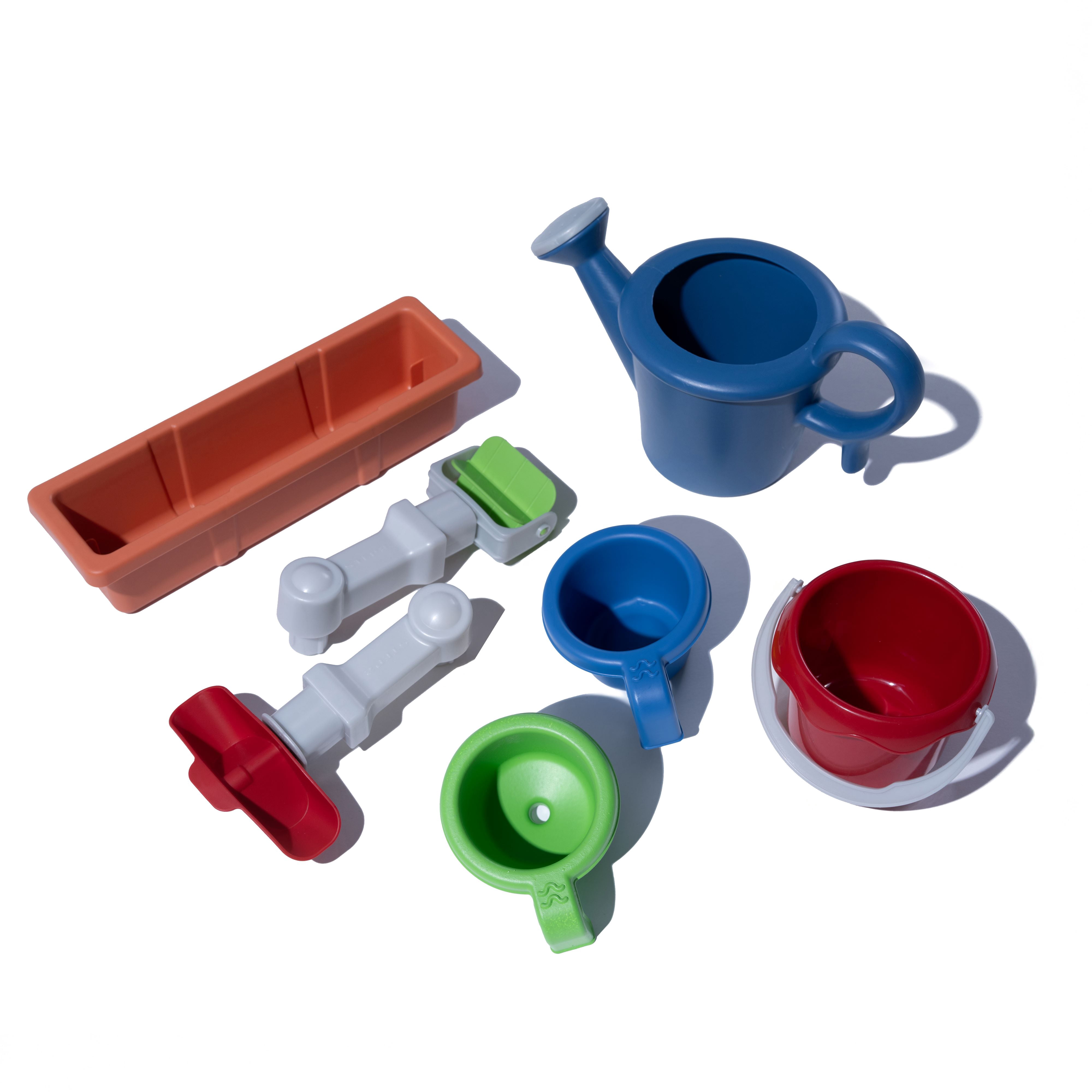 Kids can swivel the water pump to reach all the different areas of play Integrated spinners, rain showers trough & a deep water basin encourage exploration Packed with opportunities for STEM learning, kids can splash and learn while having fun The large, elevated design leaves plenty of room for multiple kids to play together A non-leak drain plug makes it easy to drain and clean after playtime fun is done An 8-piece accessory set adds to the play experience and encourages sharing Built to last, this kids water toy will bring fun to your backyard for many years to come