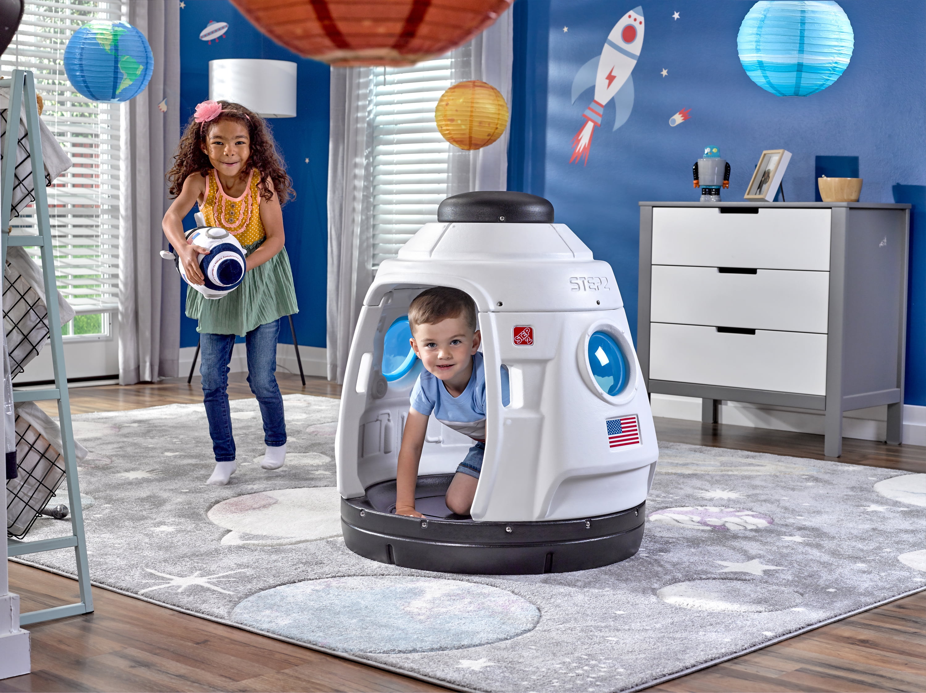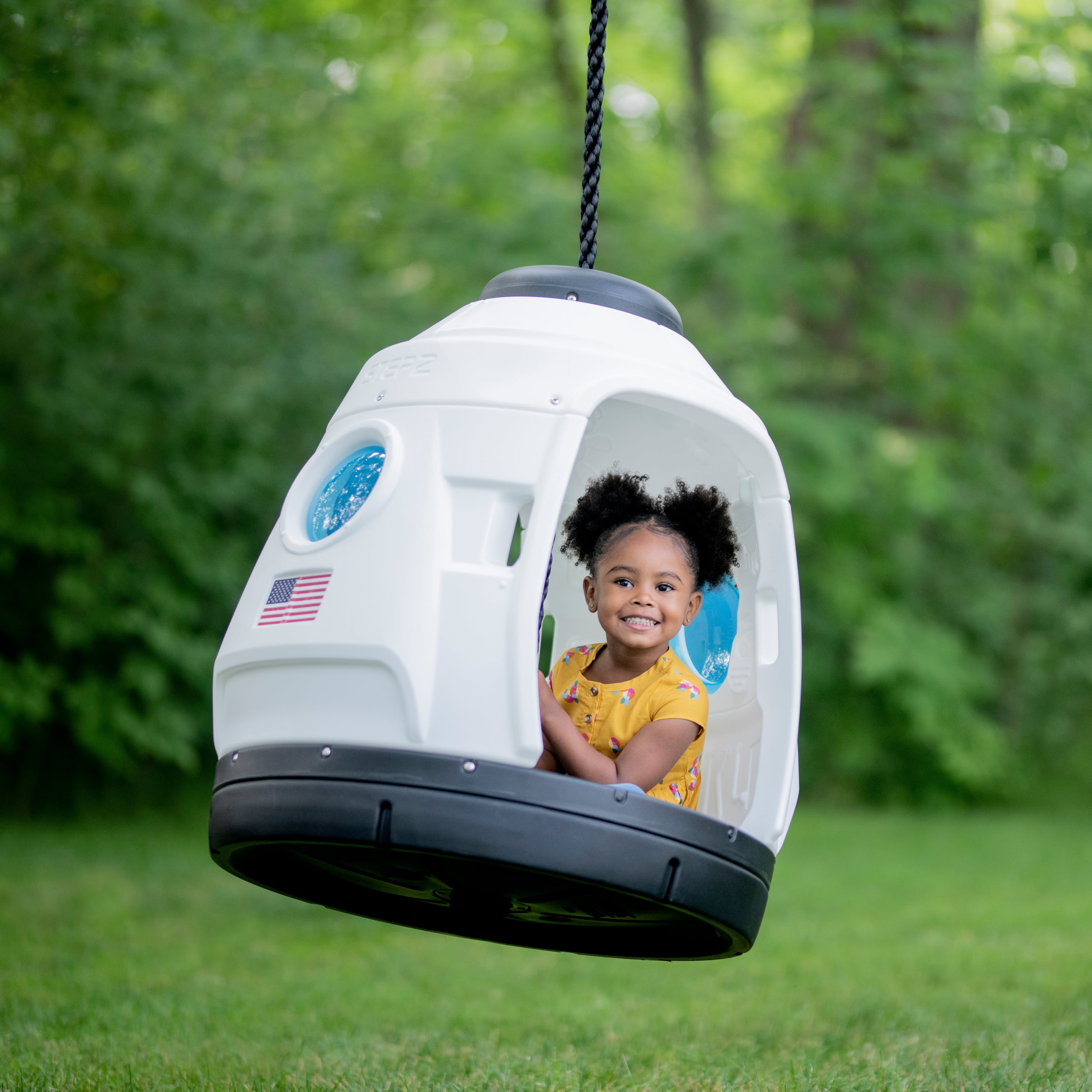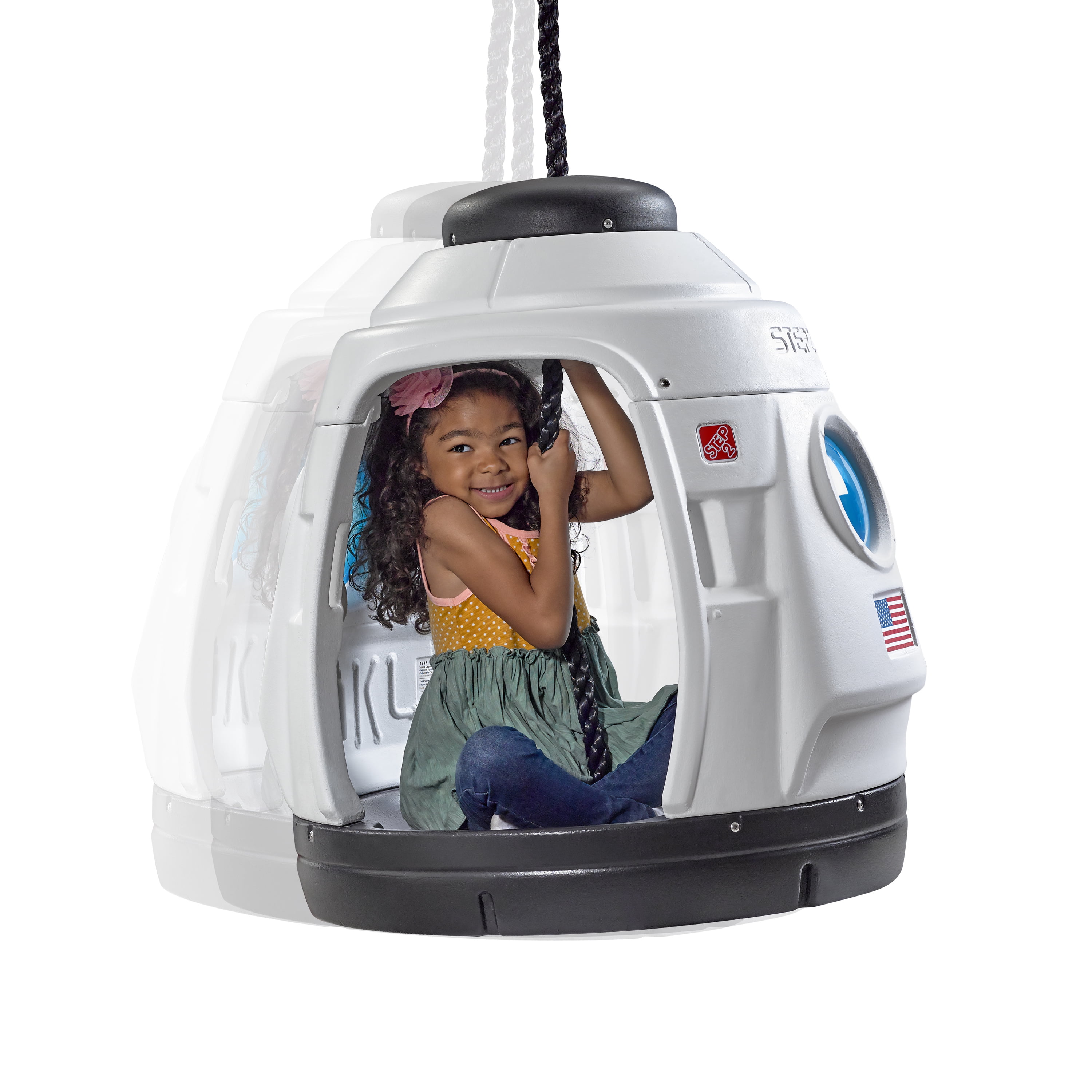 DOUBLE THE FUN: Encourage imaginative play as your child embarks on intergalactic missions in their very own Space Capsule Swing™ from Step2®. This kids’ swing features a unique pod-like design that brings double the fun with enough room for up to 2 children to play and swing. Ideal for indoor or outdoor use. SPACESHIP THEME: Imaginations will soar with the fun, space-themed design. Featuring a realistic color palette, fun decals, and molded interior details, the moments of pretend play are limitless. It’s also equipped with two porthole windows to let kids explore their surroundings as they go on out-of-this-world adventures. 2-IN-1 DESIGN: This spaceship swing features a unique dual design that allows it to be hung using the included rope for a classic, swinging experience, or placed on flat, level ground to transform it into a space-themed playhouse. Adult assembly is required to ensure a secure and stable swing for your little space explorers. RECOMMENDED AGE RANGE: 2 to 7 years