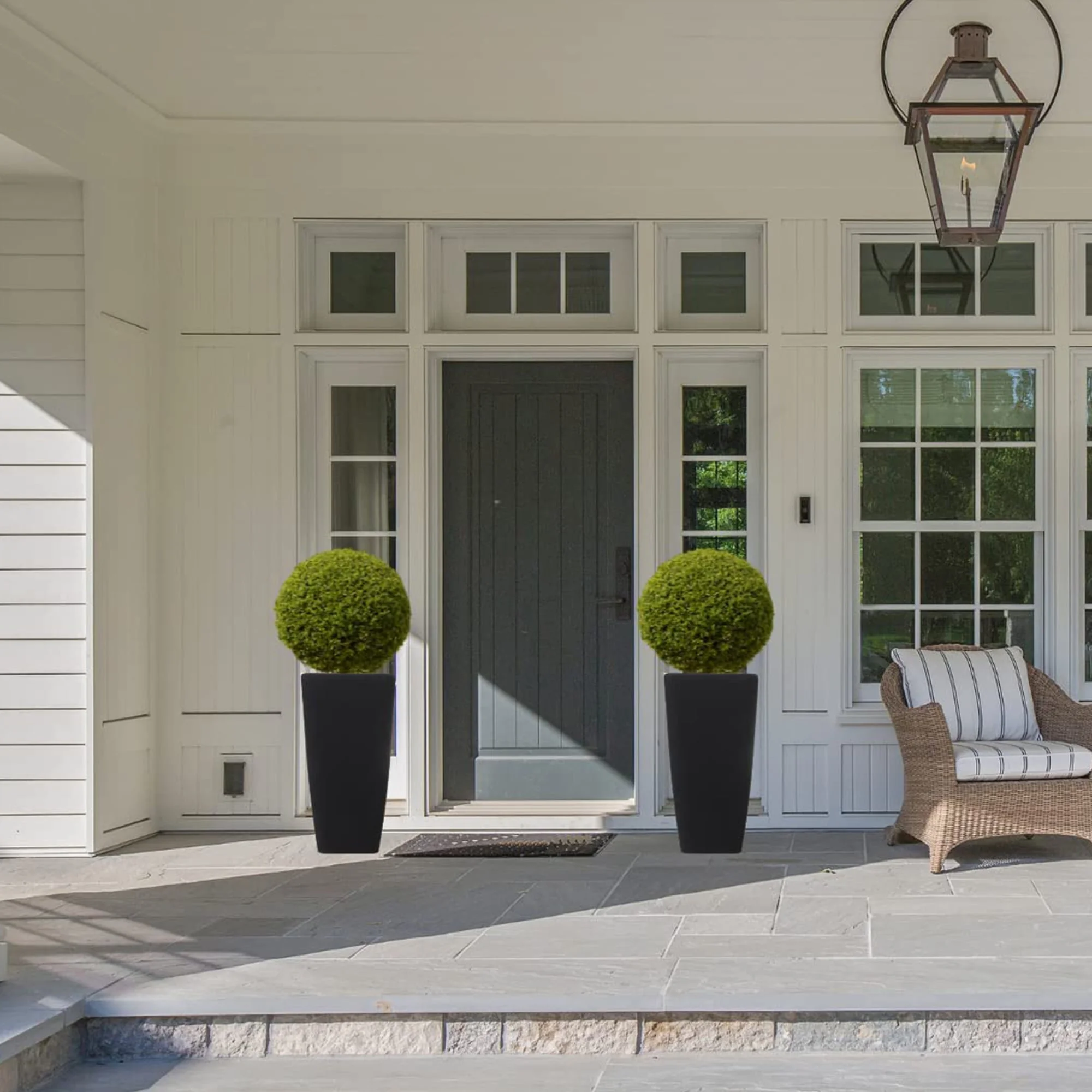 Elevate your indoor or outdoor space with the Stephan Roberts Tall 22″ Planters with Drainage Holes Set of 2. These eco-friendly planters are crafted from recycled resin, stone powder, and wood fibers, making them weather-resistant and perfect for any environment. With four raised drain holes, excess water can easily filter out, ensuring your plants thrive. Measuring 7.5″ x 11.5″ x 22″, these sleek, black planters add a modern touch to your garden, patio, or living room, complementing a variety of decor styles. Durable and versatile, these planters are an excellent choice for housing larger plants, such as ferns, pothos, ivy, and spider plants, without taking up too much space.