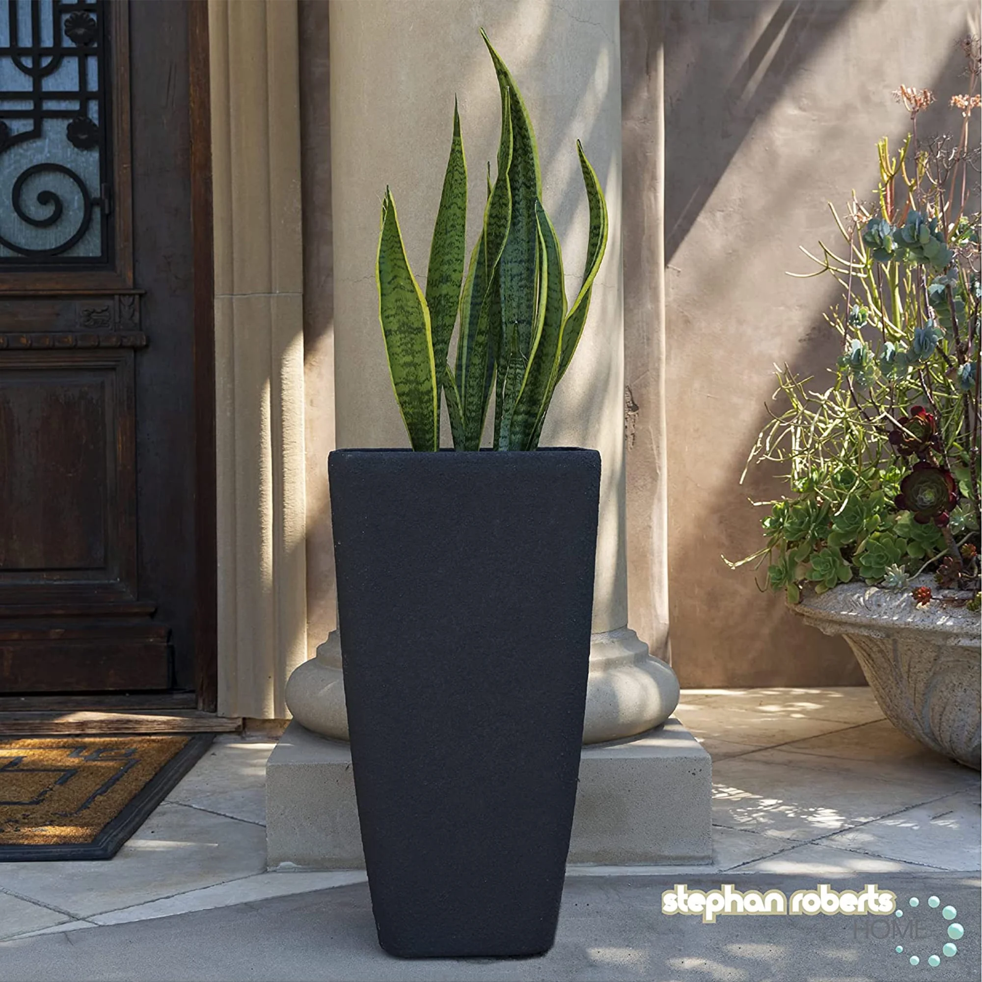 Stephan Roberts Tall 22 ” Planters with Drainage Holes Set of 2, Black
