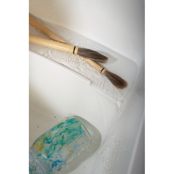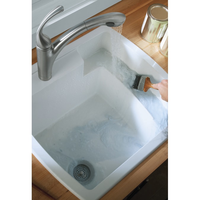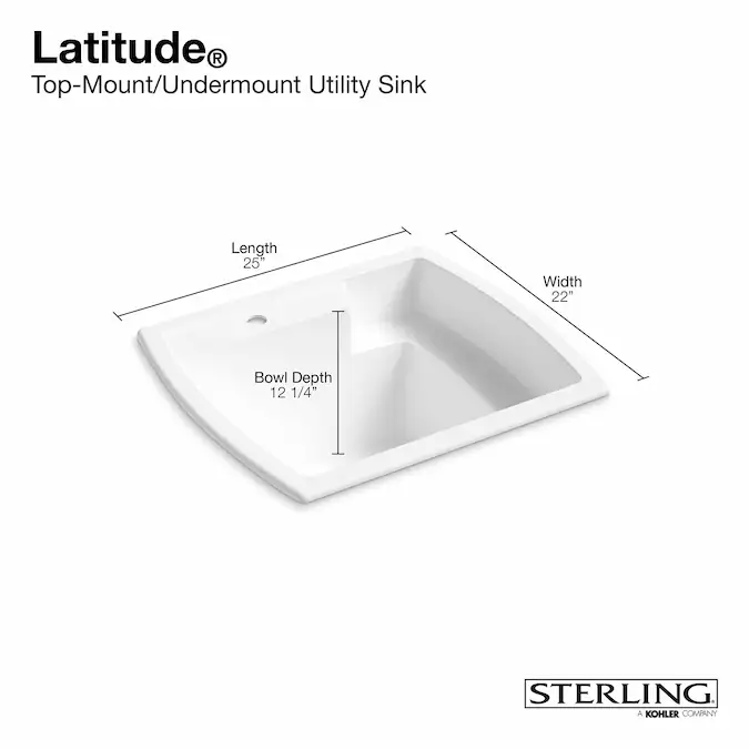 The durable, easy-to-install Latitude utility sink offers subtle, contemporary style. Made of solid Vikrell® material, it delivers strength, durability and lasting beauty. And, because this composite of polyresin and fiberglass has color molded throughout, there are no layers to crack or peel. Its unique quarter-deck design provides shelf space for storage and cleaning and adds to the overall modern appeal.