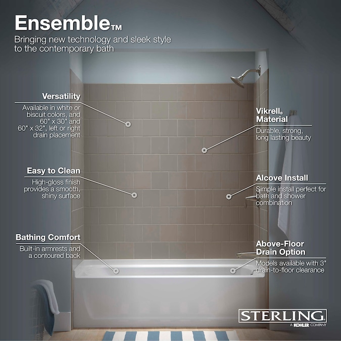 - Tub can be used by itself or with item 805824 (Medley wall surround kit) or 2524364 (Traverse wall surround kit) to complete the kit