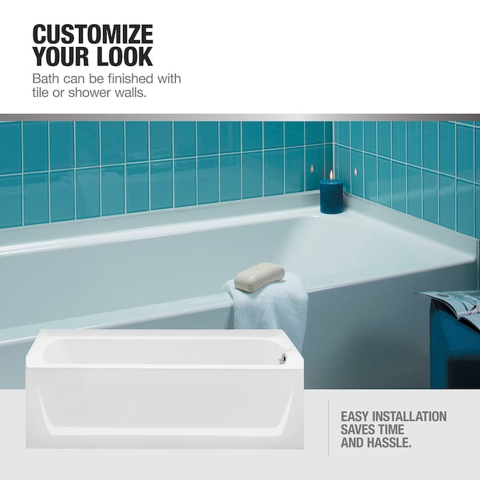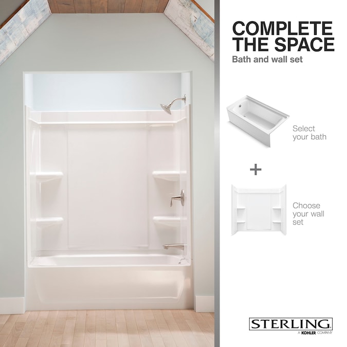 Treat yourself to a little relaxation time in this Sterling bathtub. The gently sloping design with an extra-deep bathing well allows you more soaking room for ultimate comfort. The solid Vikrell material is durable and the smooth, high-gloss finish is easy to clean. The 2-in wainscot allows for tile installation above the bath deck, so you can customize your bath decor. Find your inner peace with the help of this bathtub.