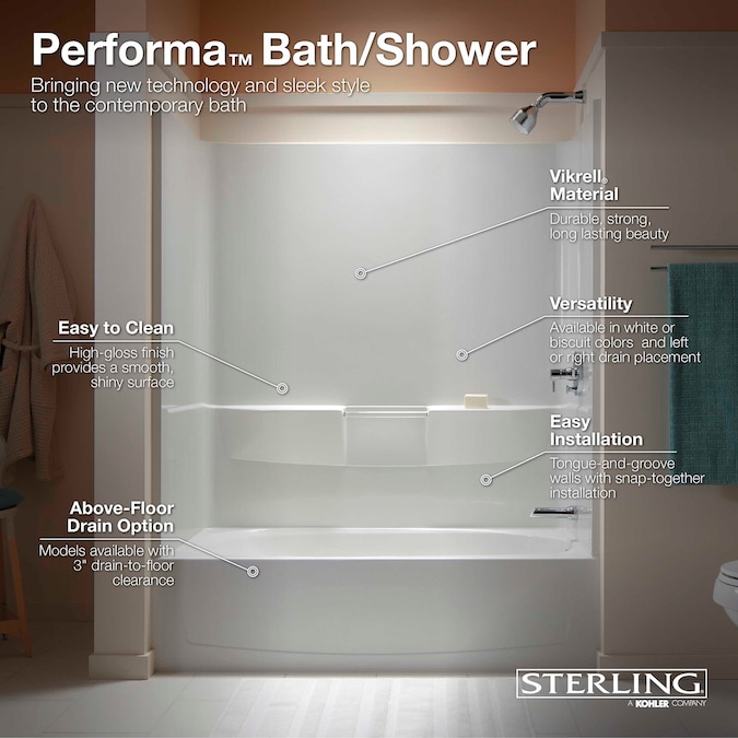 The clean, pared-down design of Performa 2 provides a relaxing, spacious bath and easily blends with a variety of decors. The Performa 2 bath is constructed from solid Vikrell®, giving it a high-gloss finish that is easy to clean. An innovative step flange provides superior water containment and a more positive seal.