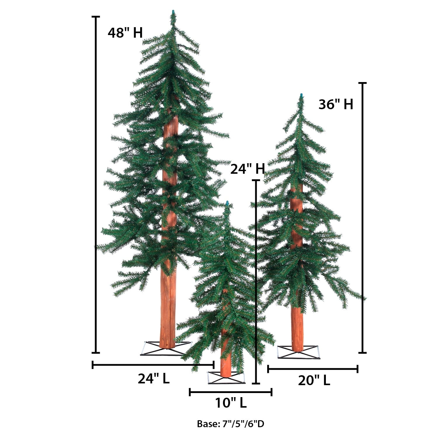 Bring a touch of nature to your holiday decor with this set of three Unlit Alpine Christmas Trees. These trees are perfect for adding a rustic, woodland touch to your home. The largest tree stands at 4 feet tall, the medium tree at 3 feet tall, and the smallest tree at 2 feet tall. With a total of 633 branch tips between them, these trees are sure to look full and lush.Constructed with high-quality materials, these trees are built to last for seasons to come. The sturdy branches make it easy to hang ornaments or decorations. The unlit design allows you to customize the trees with your own choice of lights or leave them as is for a more minimalist look.Create a winter wonderland scene in your home by placing these trees together or separately. They are perfect for adding a cozy touch to your living room, entryway, or any other space that needs a festive touch. The simple, yet elegant design makes these trees a timeless addition to your holiday decor collection.
