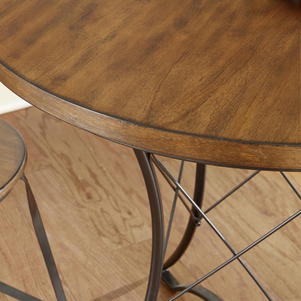 Steve Silver Adele Pub Style Rustic Wood and Metal Round 36″ Counter Height Kitchen Dining Table, Brown