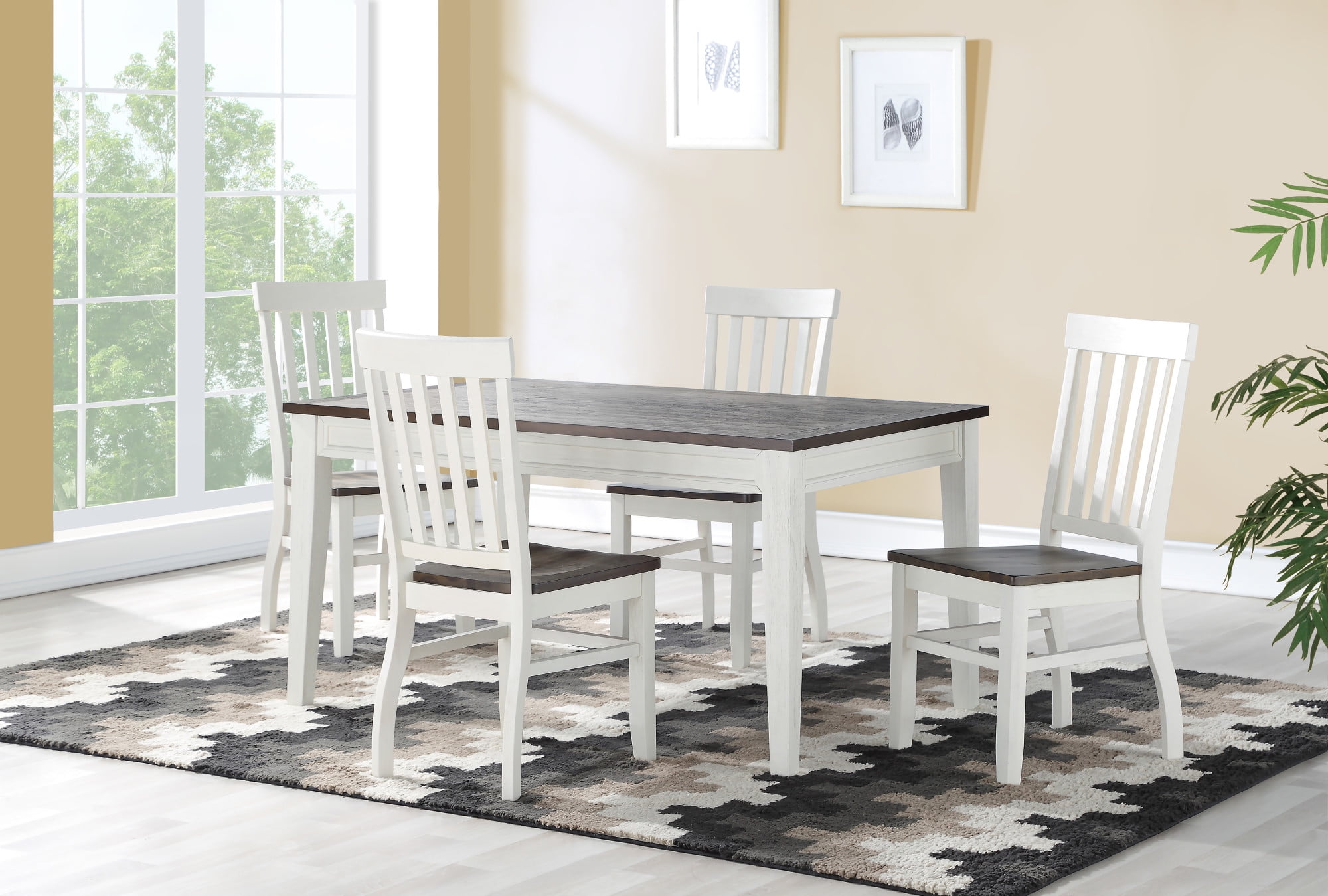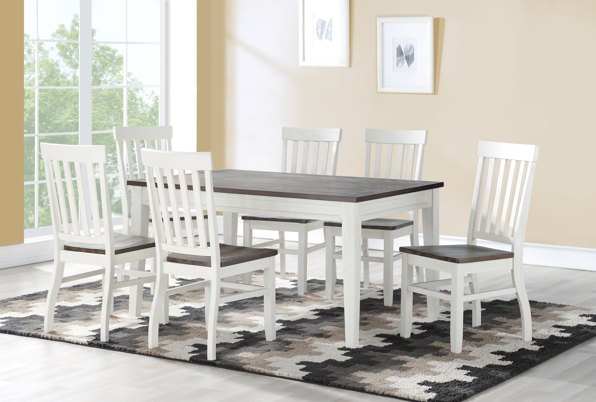 Steve Silver Caylie Farmhouse Dining Chair with Schoolhouse Back, Set of 2, Ivory / Driftwood