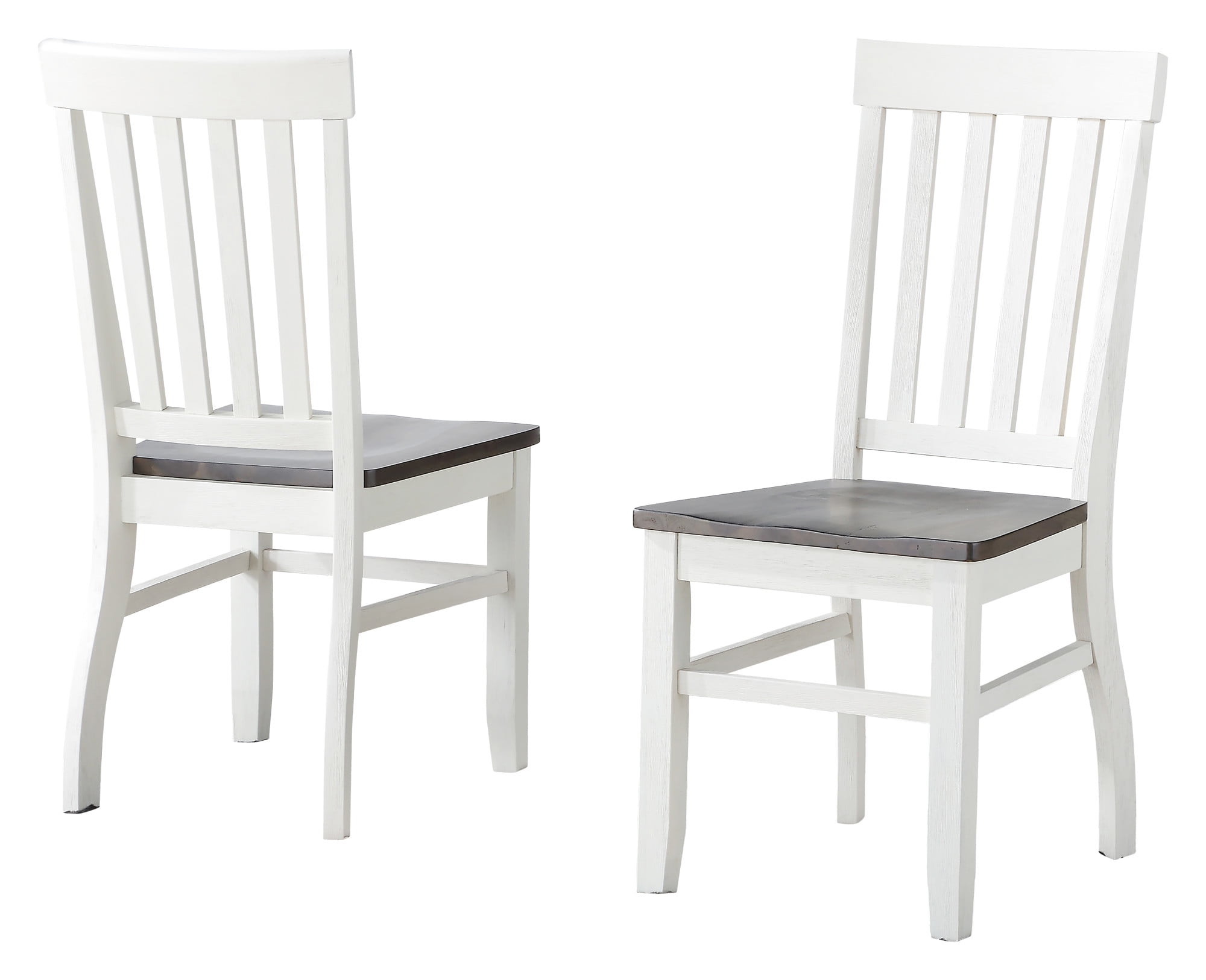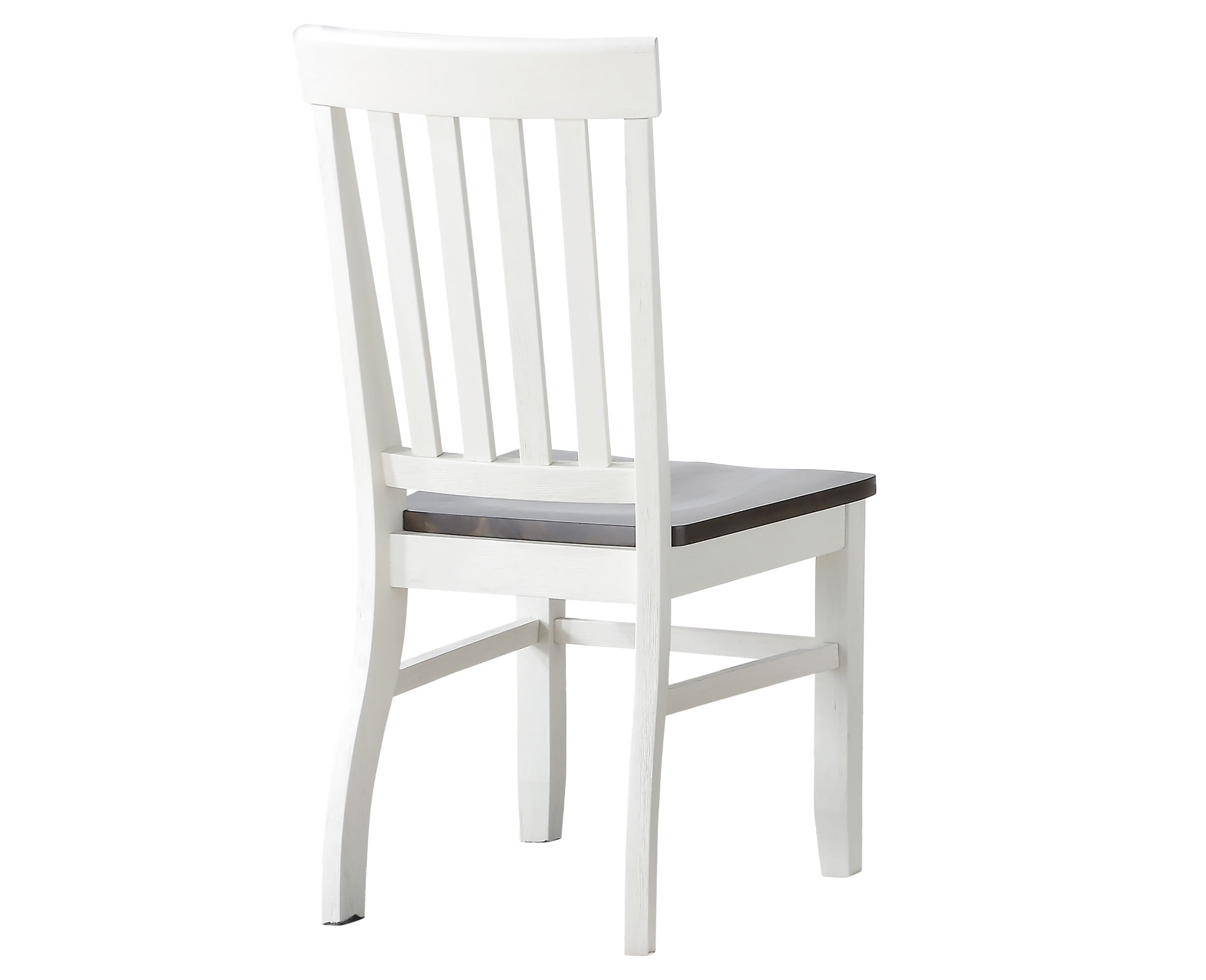 Two-tone ivory and driftwood finish School house styling Solid wood seat Scooped seat for comfort Tapered legs Vertical slat back