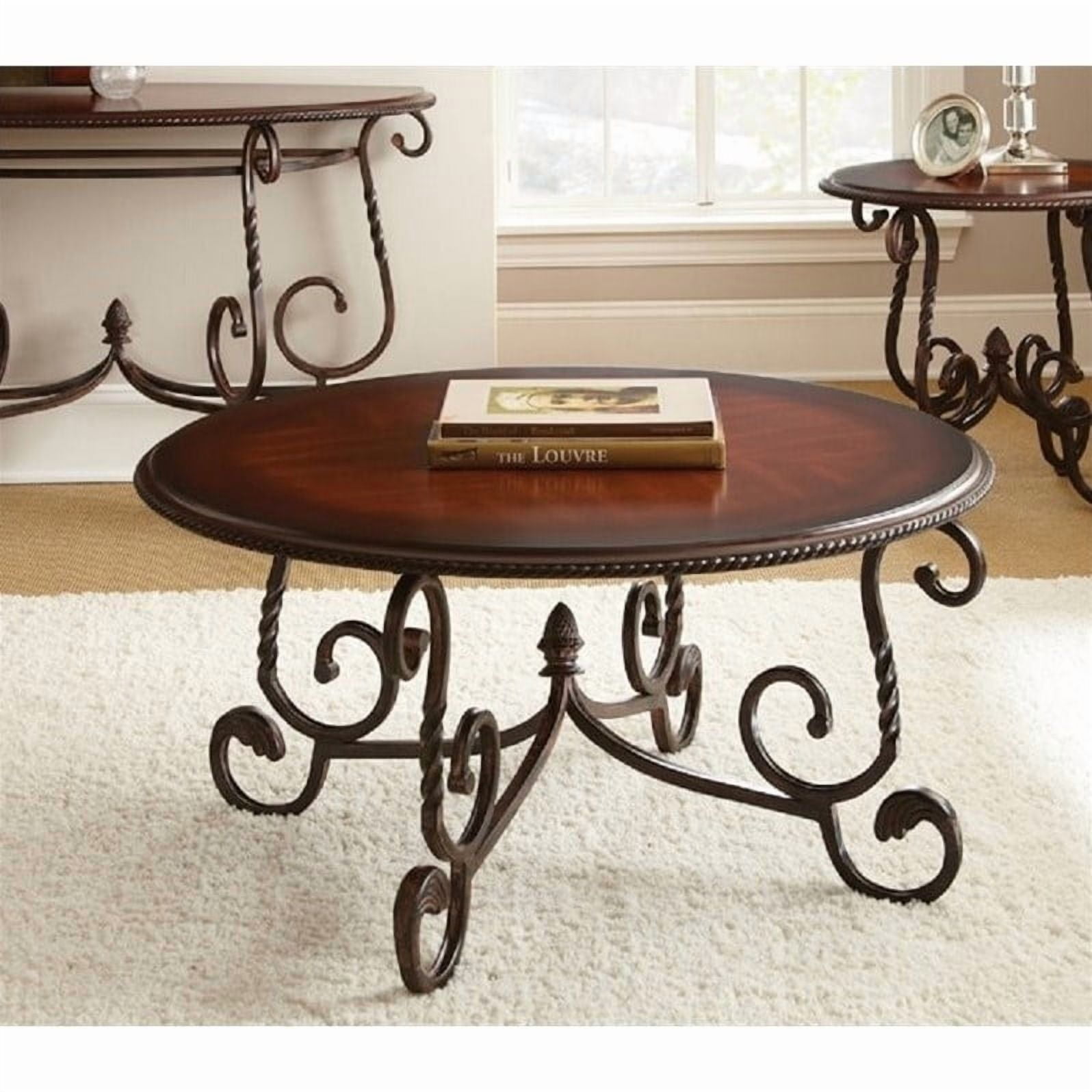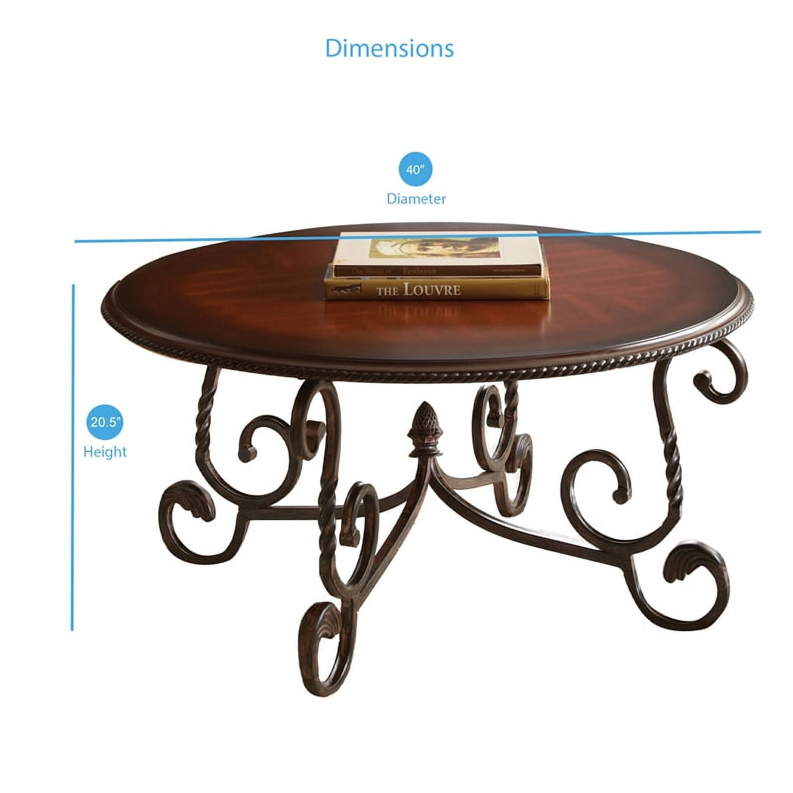 Steve Silver Crowley Indoor Wood Traditional Round 20″ Height Coffee Table, Cherry