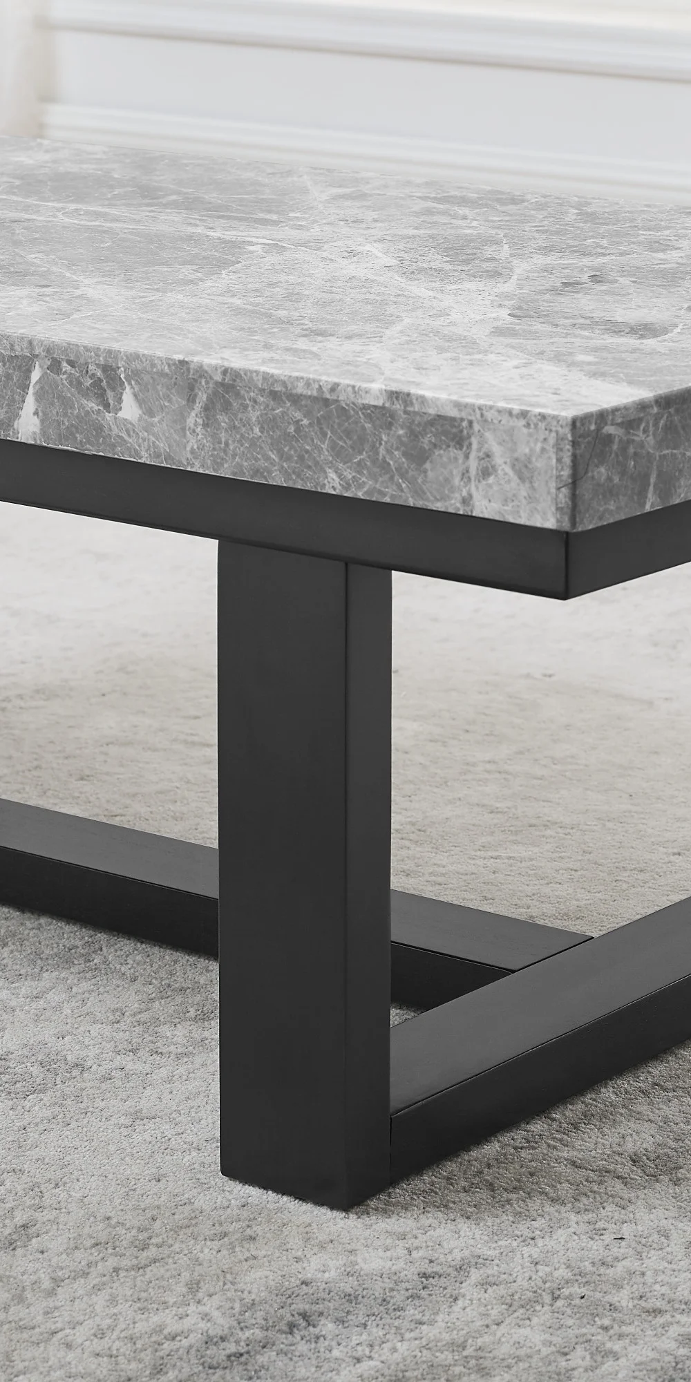 The straightforward style of the Lucca Coffee Table from Steve Silver allows the natural beauty of the gray marble top to shine through. The top is 55mm gray marble veneer and is crafted by nature with unique characteristics that vary slightly so no two pieces will be exactly the same. A hand-stained espresso wood base highlights the character and grain of the wood while clean, geometric lines frame the table without feeling heavy. Crafted from kiln-dried wood helps prevent warping, splitting, and cracking.