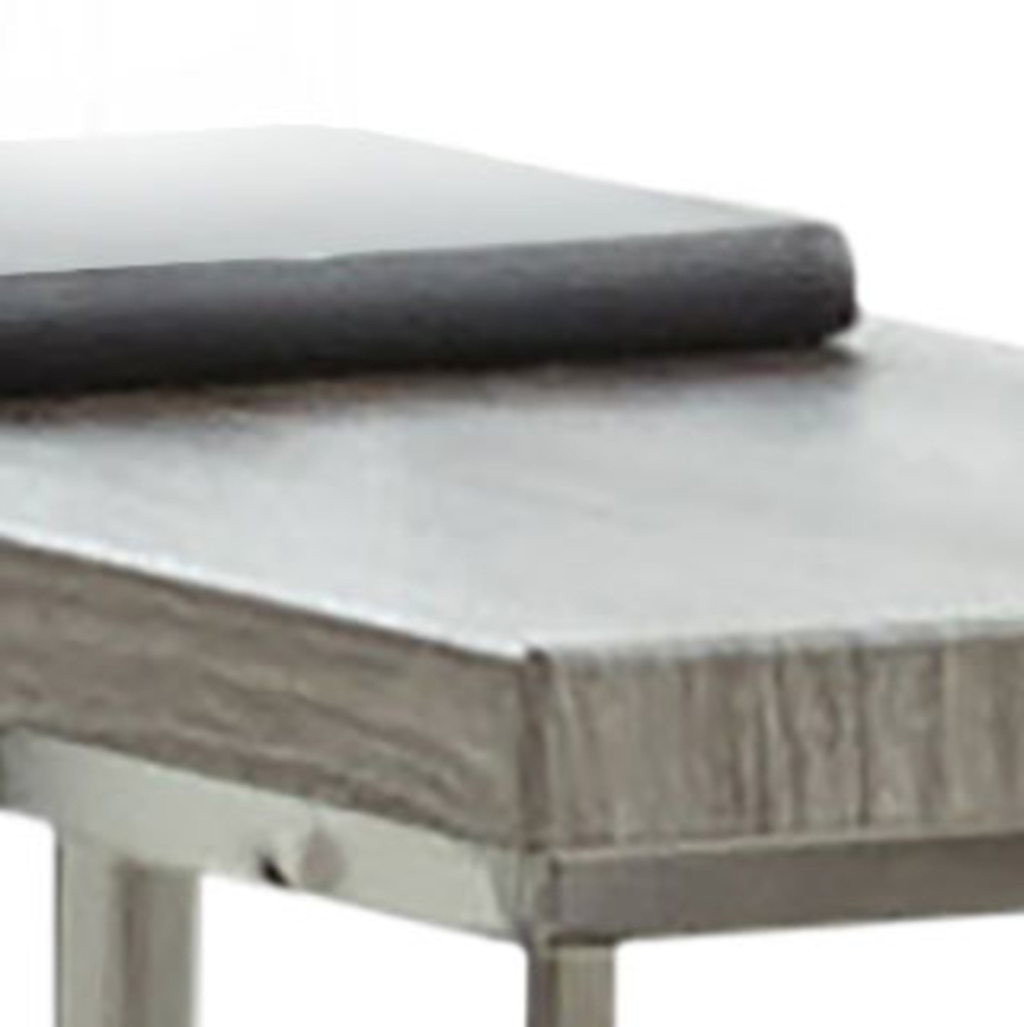 Finish: Nickel Medium driftwood gray and chrome Durable Silvershield 3D PVC laminates and chrome Space saving chairside table is very functionable Architectural contemporary styling