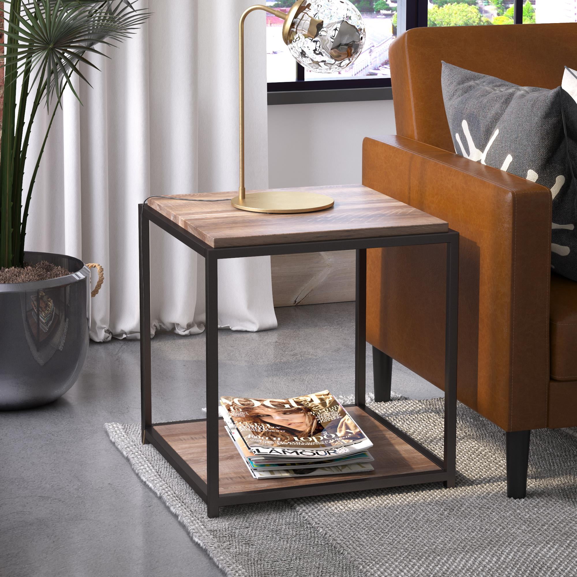 Steve Silver Lucia Indoor Modern Chairside 25″ Tall C Shape End Table, Gray/Black Nickel
