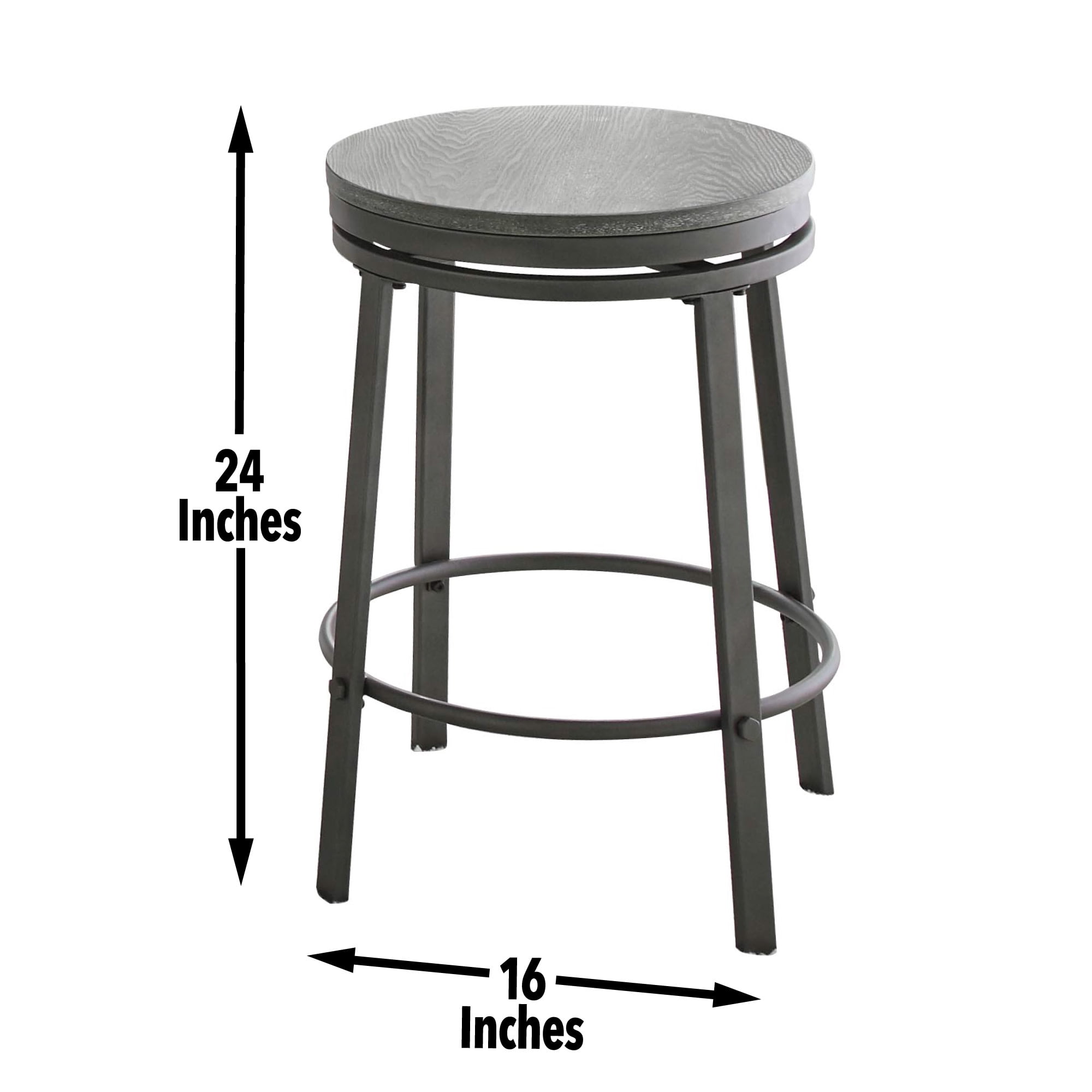 Grey-brown finish 180 Swivel seat Floor glides to help protect your floors Industrial design Product Dimensions: 24″ H x 16″ W x 16″ D Circular stretcher adds strength and stability