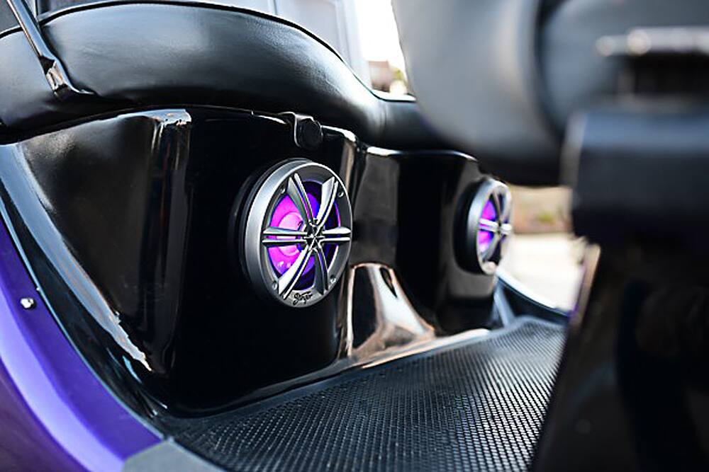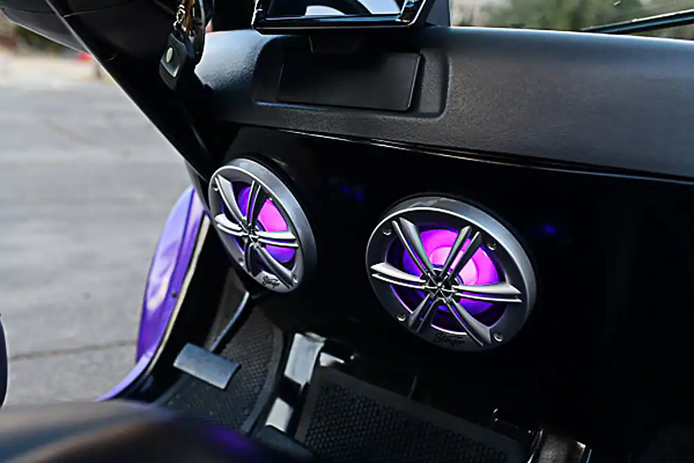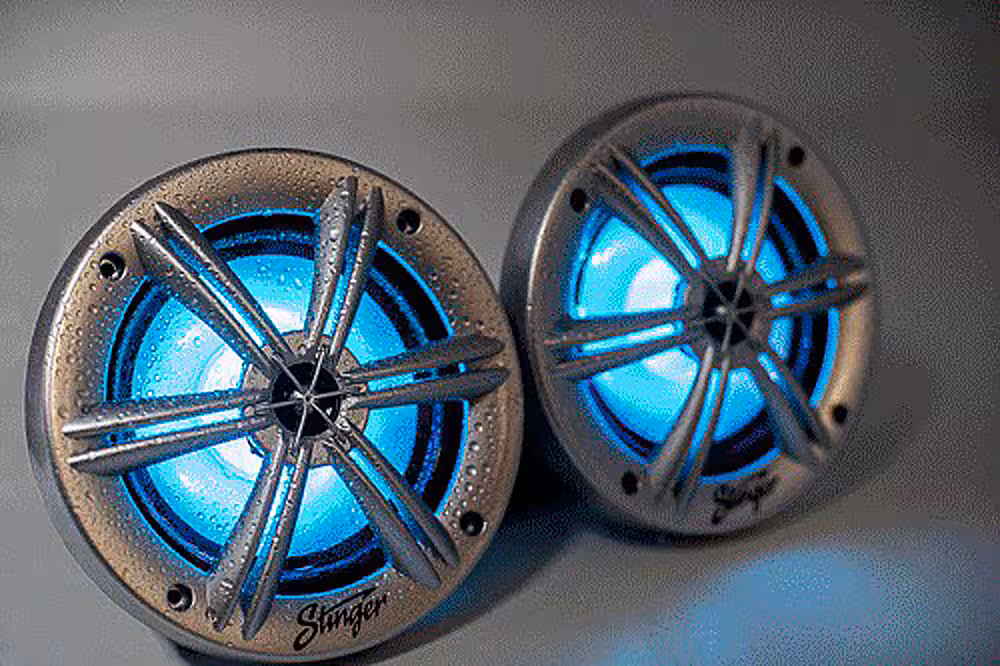 Take your audio outdoors with a pair of 6.5” 2-Way Marine Coaxial LED Illuminated Speakers with Poly Carbon Cones by Stinger. Customize your speakers with fully adjustable full spectrum LED lighting using the included wireless remote controller. These element-resistant speakers feature precision non-corrosive terminals, splash resistant sealed motors, and UV treated molded polymer to ensure long-lasting use for all of your marine and powersports applications. The SEA65RGBS can handle up to 150W peak power (75W RMS) and features a built-in crossover to deliver powerful sounding audio.