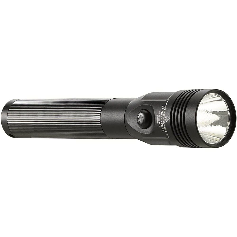 Streamlight 75430 Stinger LED HL Rechargeable High Lumen Flashlight with 120-Volt AC/12-Volt DC 2-Holders (NiMH) Charger. Streamlight’s HL Series – now available in rechargeable systems. When you need maximum illumination with a wide beam to search a large area, the Stinger LED HL rechargeable, high lumen flashlight provides a blast of 640-lumen with 297-meter of beam distance. 3-Lighting modes and strobe: High for high-lumen and super-bright light; Medium for intense brightness and longer run time; Low for extended run times and when a less intense beam is ideal; Strobe for signaling or disorienting. C4 LED technology, shock-proof with a 50,000 hour lifetime. Deep-dish parabolic reflector produces a concentrated beam with optimum peripheral illumination. Optimized electronics provide regulated intensity throughout battery charge. NiMH battery rechargeable up to 1000 times; also accepts NiCd battery. Made up of 6000 series machined aircraft aluminum with non-slip rubberized comfort grip and anti-roll rubber ring. Unbreakable polycarbonate lens with scratch-resistant coating. IPX4 water resistant and 1-meter impact resistance tested. Serialized for positive identification. Length: 8.41-inch (21.36 cm) and weight: 12.4-ounce (352 g). Comes with a limited lifetime warranty. Features 50,000 hour lifetime Optimized electronics provide regulated intensity throughout battery charge NiMH battery rechargeable up to 1000 times; also accepts NiCd battery Anodized aluminum construction with non-slip rubberized comfort grip IPX4 water resistant and 1-meter impact resistance tested