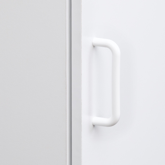 - Stor-It-All collection multi-purpose cabinet in a durable white finish with versatile appeal