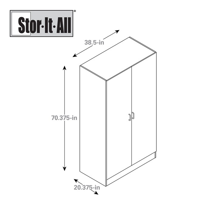 This 39 inch multipurpose cabinet provides added storage in a transitional door style to complement any room. This utility cabinet features a slab door in a durable white finish that is easy to clean. This Stor-It-All cabinet is the solution for your kitchen pantry, laundry room, bathroom, and garage.