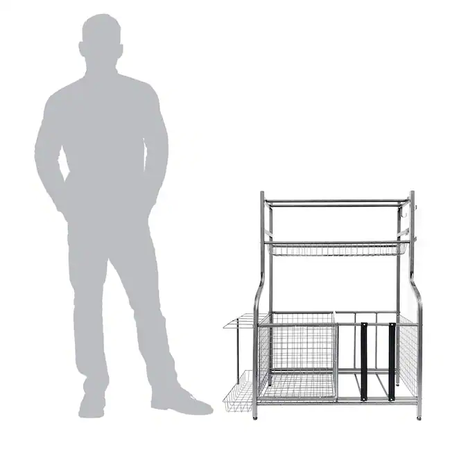 - Powder coated steel makes garage organizer weather and rust resistant