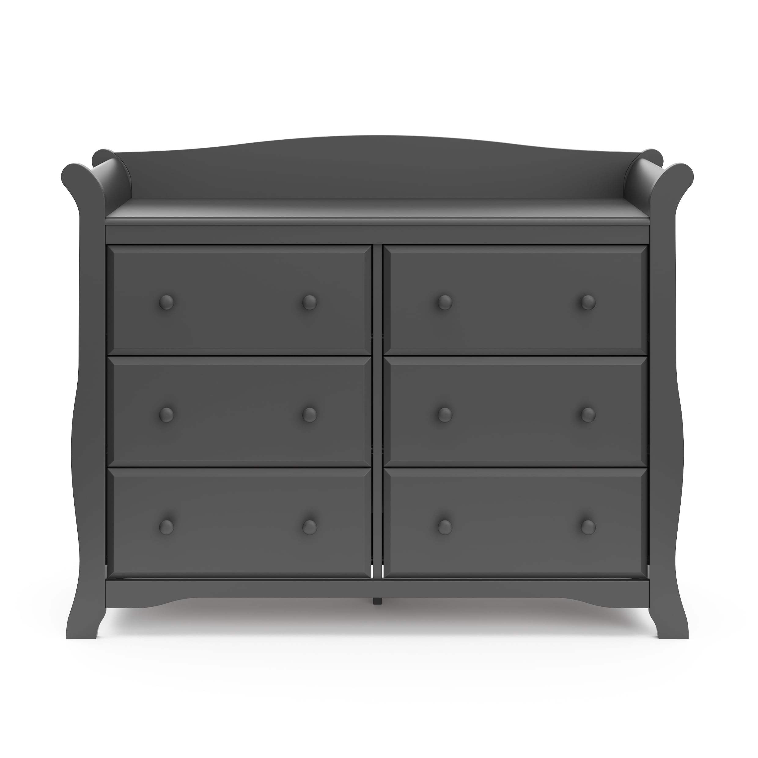 CLASSIC, TRADITIONAL 6-DRAWER DRESSER: This 6-drawer double dresser offers families a convenient storage solution in a classic, traditional sleigh design that is easy to match with any nursery or kids bedroom QUALITY WOOD CRAFTMANSHIP: Crafted of wood framing and wood composites, and includes Euro drawer glides (assembly required) COMPATIBLE WITH CHANGING TOPPER: Transform your Storkcraft Avalon 6 Drawer Double Dresser into a multifunctional changing station with the compatible Storkcraft Universal Changer Topper (sold separately) GREENGUARD GOLD CERTIFIED, SAFETY TESTED: GREENGUARD Gold Certified products are screened for more than 10,000 chemicals and VOCs known to pollute indoor air; Tested to meet or exceed applicable CPSIA & ASTM International category safety standards SAFETY TESTED: Tested to meet or exceed all applicable CPSIA & ASTM International category safety standards, including the ASTM F2057 safety specification for clothing storage units INTERLOCKING DRAWER SYSTEM, TIP-OVER RESTRAINT KIT: For added safety, dresser includes innovative interlocking drawer system and tip-over restraint kit to reduce furniture tip-over hazards; Tested to meet or exceed all applicable category safety standards PACKAGED WITH CARE: Packaging tested to reduce the risk of incidental shipment-related damage; Backed by a 1-year limited manufacturer’s warranty AWARD-WINNING BRAND: Storkcraft is the proud recipient of the 2023 Women’s Choice Award for 9 out of 10 Customer Recommended Baby & Kids Furniture PTPA SEAL OF APPROVAL: Graco is the proud recipient of the Parent Tested Parent Approved (PTPA) Seal of Approval, the leader in consumer product awards for families