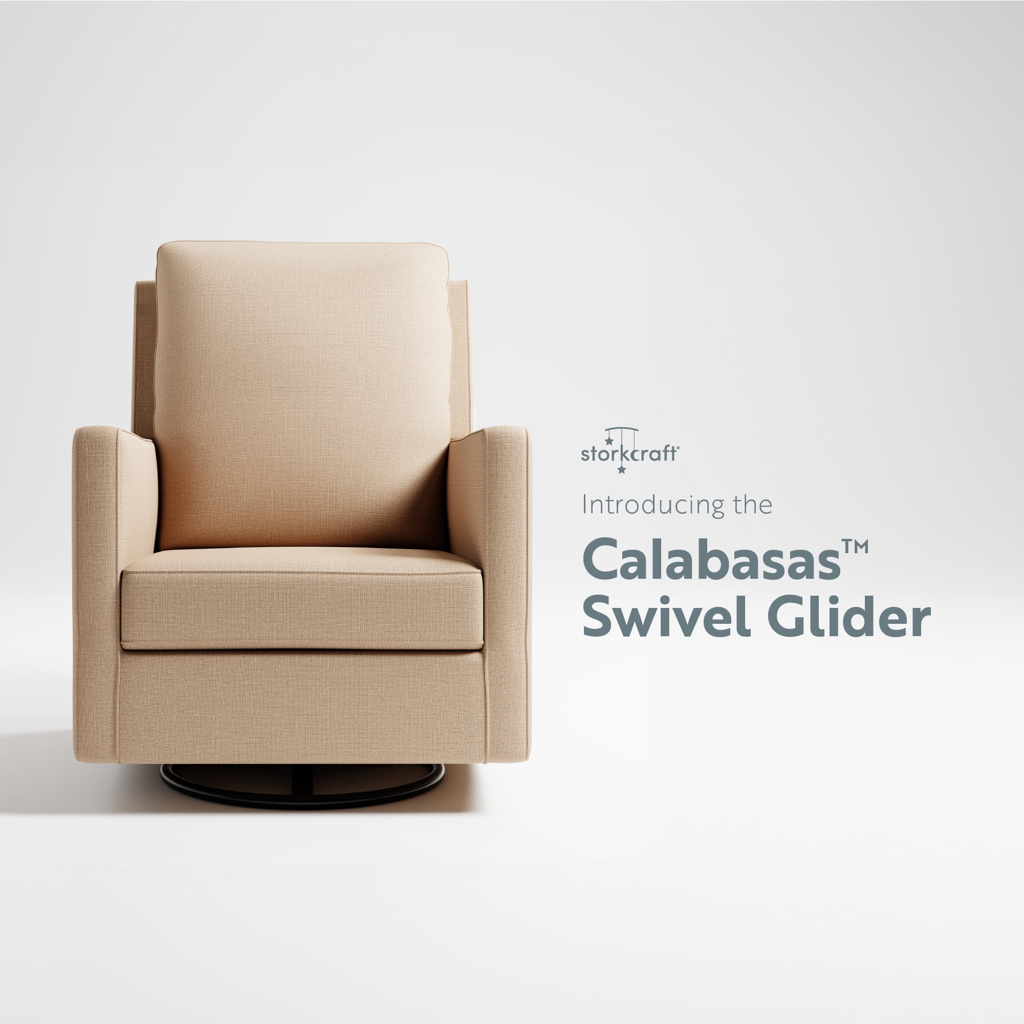 Introducing the Storkcraft Calabasas Upholstered Swivel Glider – your ultimate comfort companion for those precious moments with your little one. Seamlessly blending swivel and glide functionalities, the Calabasas ensures a serene experience, perfect for bonding with your baby. Its gentle rocking motion adds an extra touch of soothing comfort, ensuring blissful relaxation for both parent and child. Designed to effortlessly complement any space, the Calabasas glider is a versatile choice suitable for rooms of all sizes. Its compact design maximizes comfort without compromising on precious indoor room space, offering you the perfect balance of functionality and style. The Calabasas features our exclusive fabric options: fog, pearl, and latte, the Calabasas radiates elegance and luxury while promising durability for years to come. Elevate your nursery or living room with fabrics that not only stand the test of time but also enhance the ambiance of your space. Experience the perfect blend of style, comfort, and functionality with the Storkcraft Calabasas Upholstered Swivel Glider – where every moment with your little one is wrapped in tranquility and sophistication. Exclusively from Storkcraft, makers of fine nursery furniture since 1945. Rest easy knowing that the Storkcraft Calabasas Swivel Glider is backed by a 1-year limited warranty and our supportive Customer Care team. Proud recipient of the Parent Tested Parent Approved (PTPA) Seal of Approval. Complete the Storkcraft Calabasas collection with the Storkcraft Calabasas 3-in-1 Convertible Crib and Storkcraft Calabasas 6-Drawer Dresser.