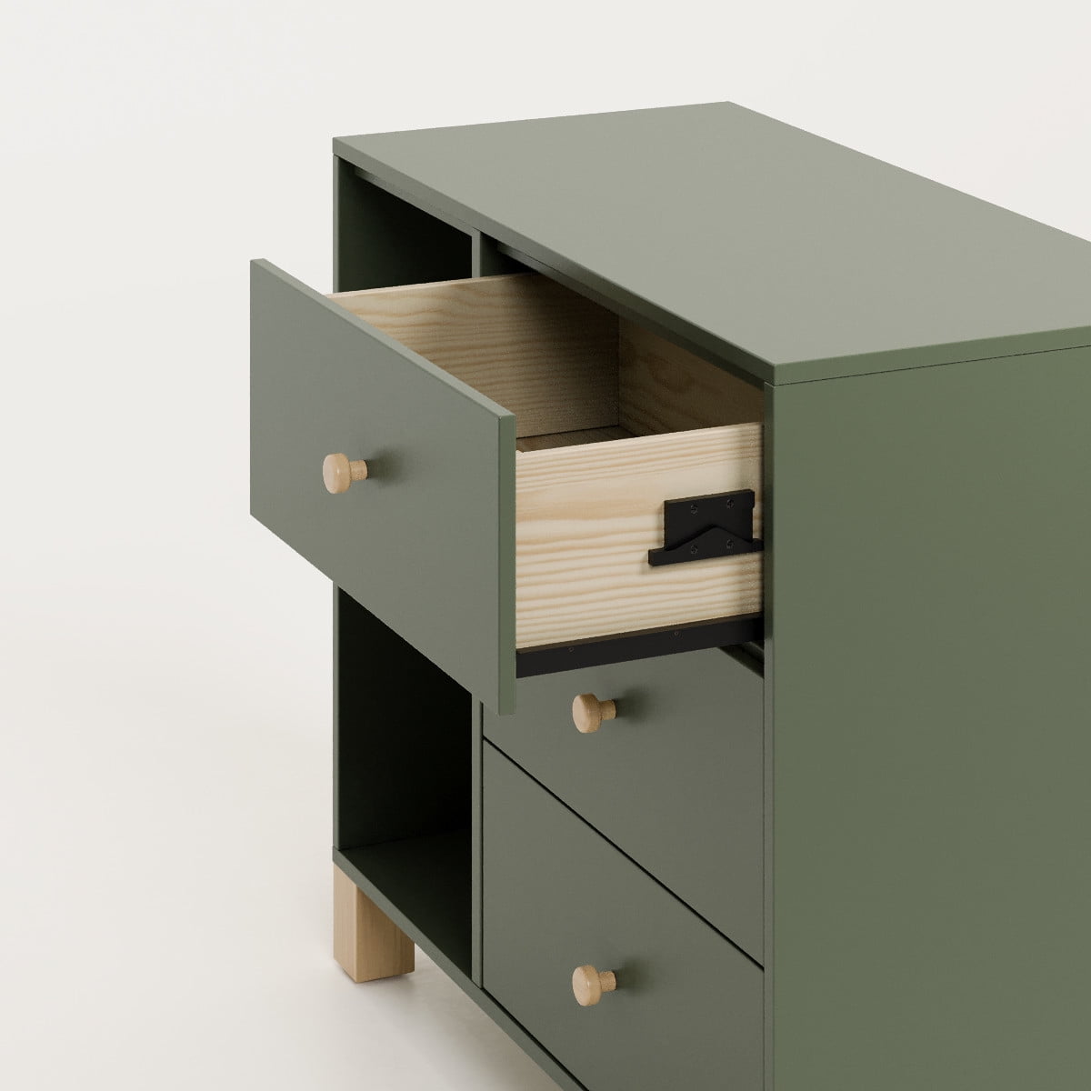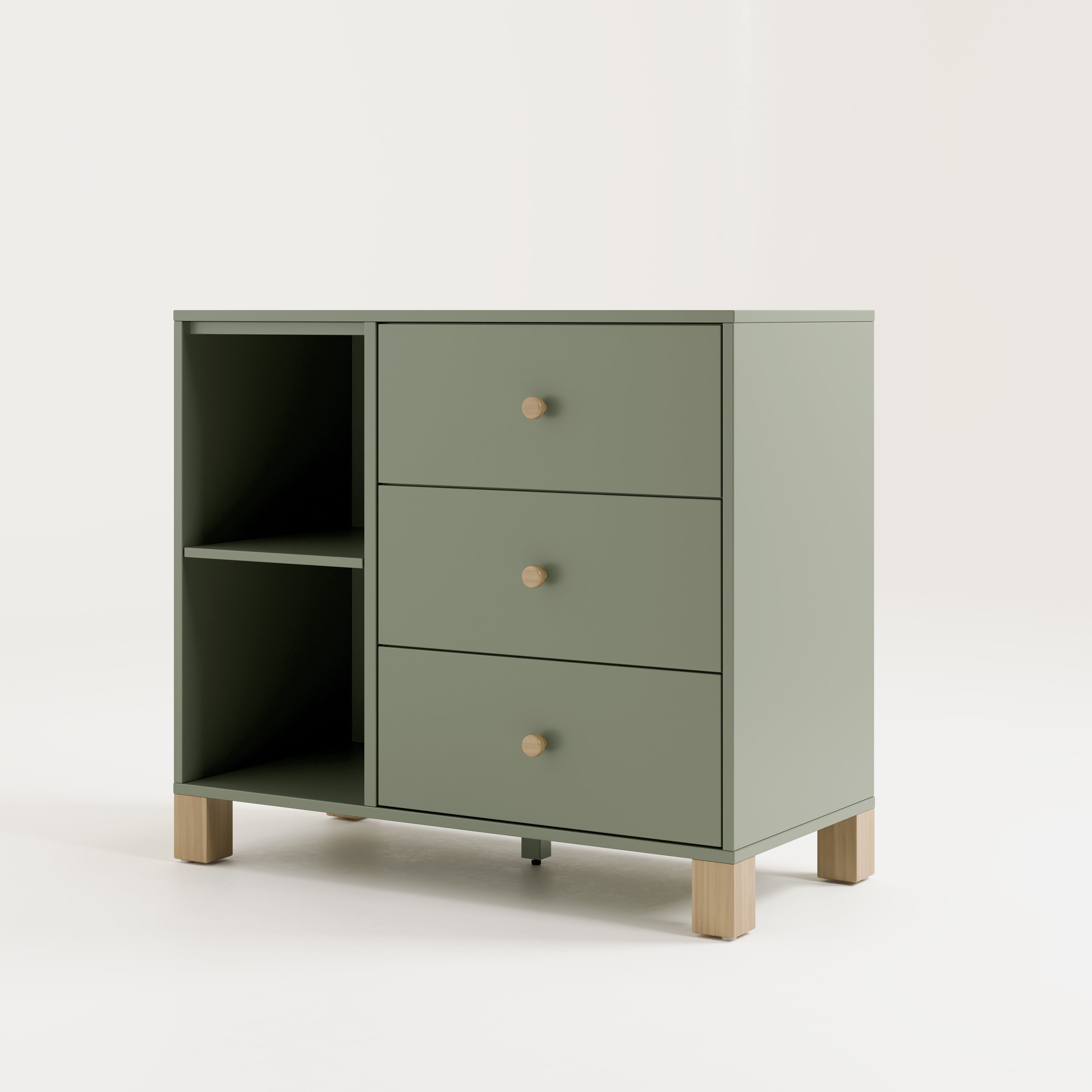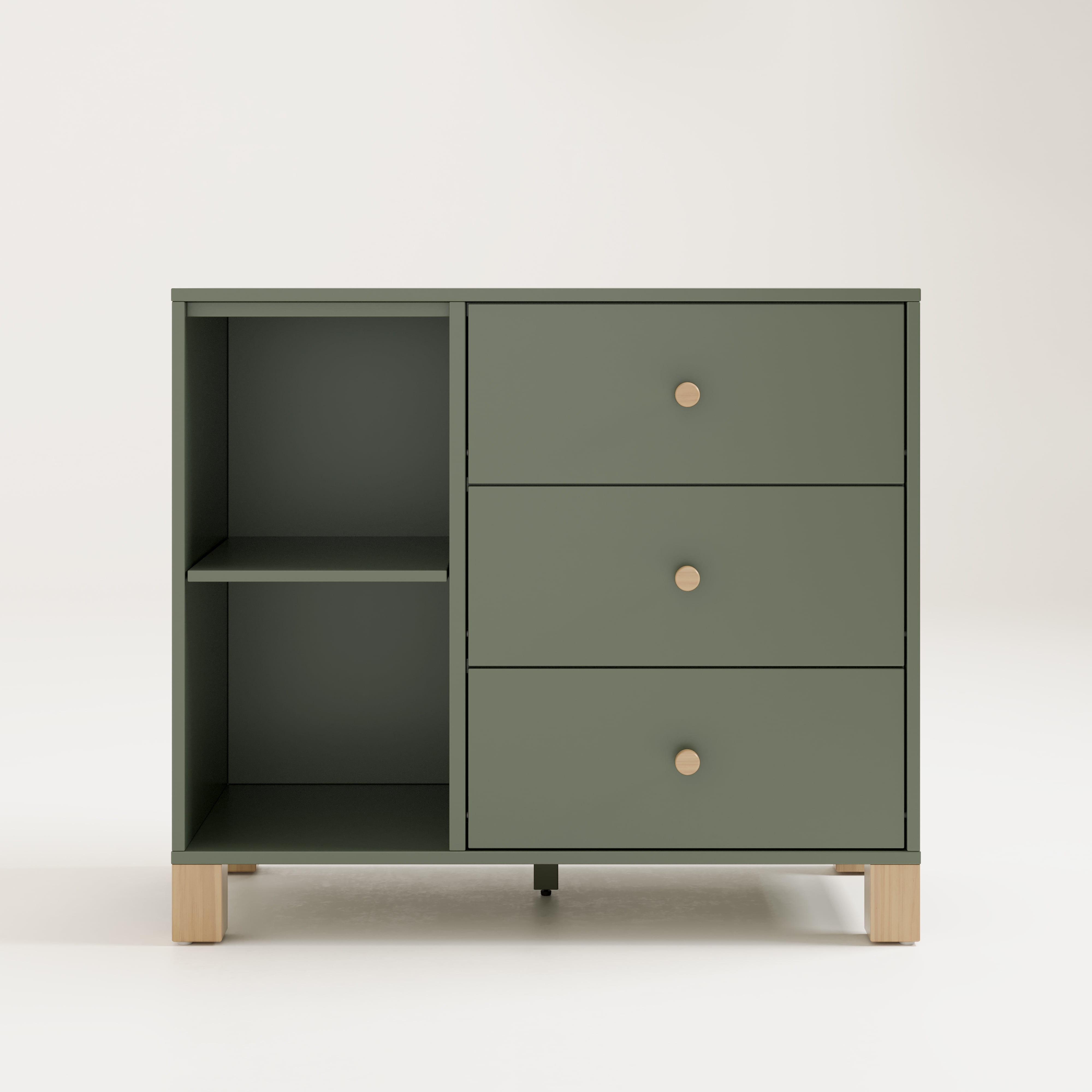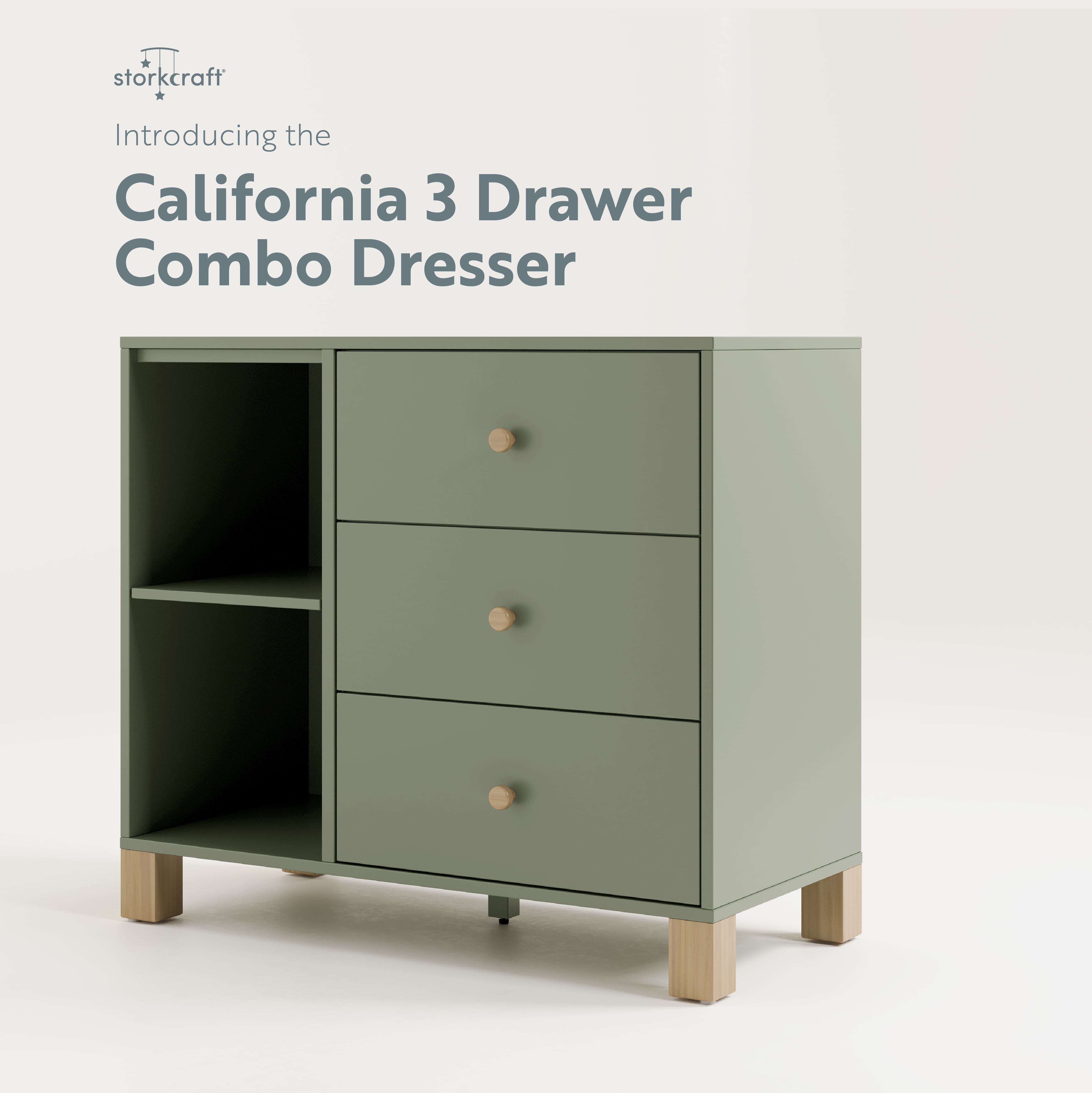Storkcraft California 3 Drawer Nursery Combo Dresser, Olive with Driftwood