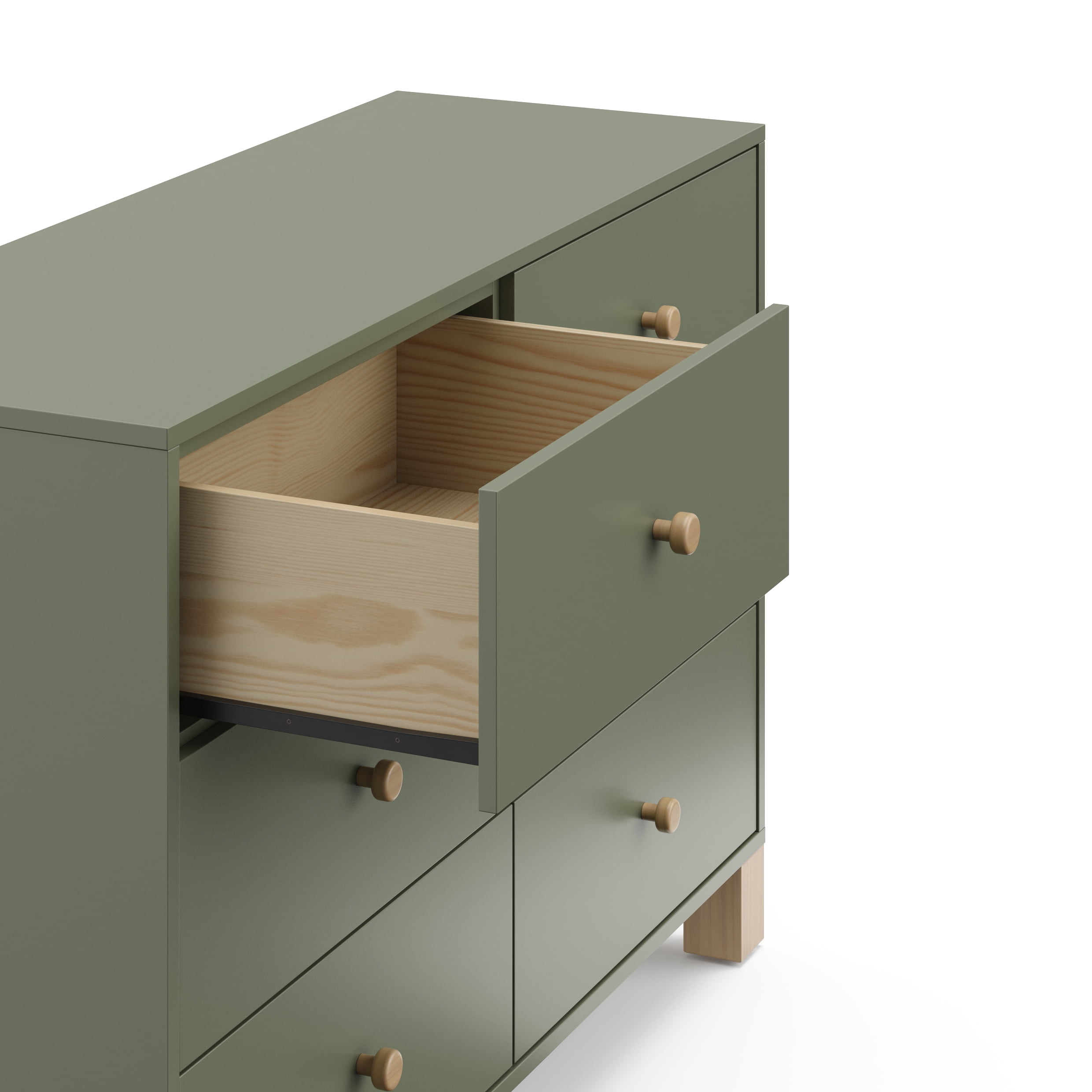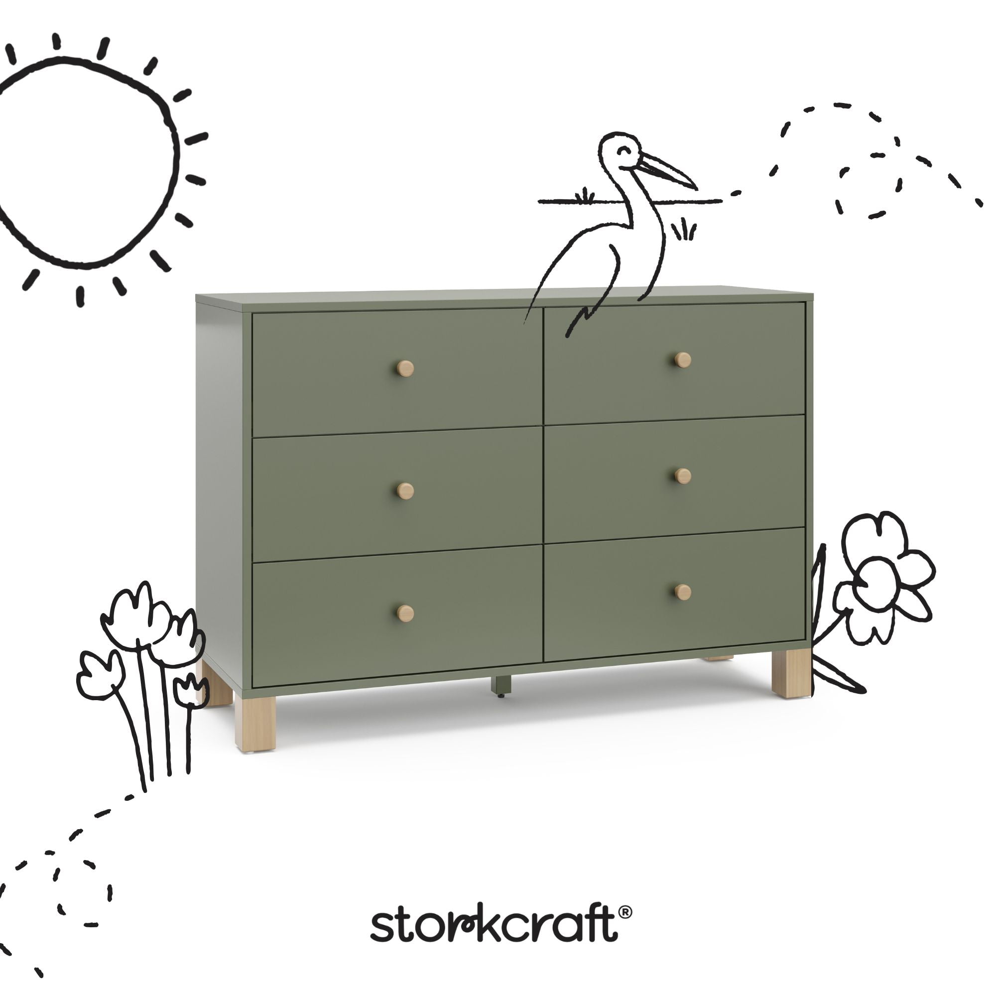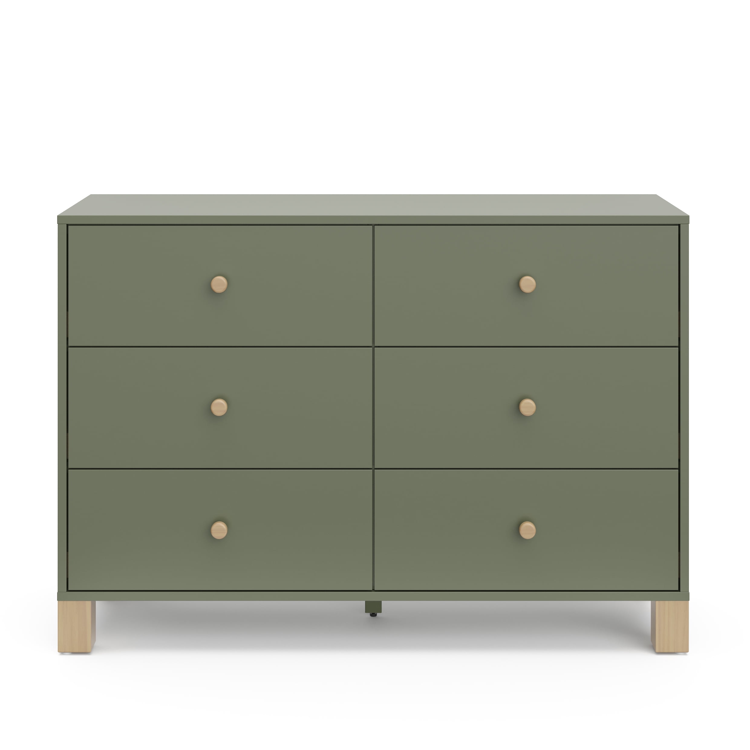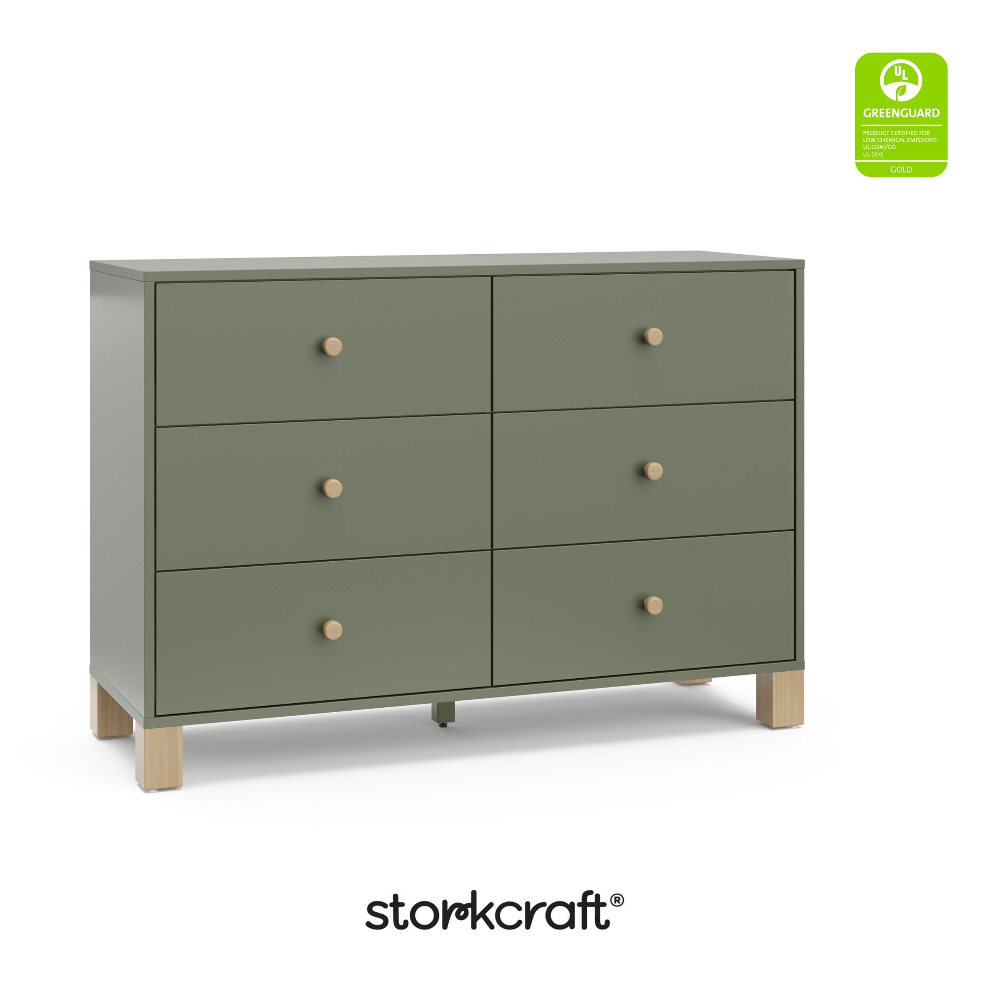 Storkcraft California 6 Drawer Nursery Wood Double Dresser, Olive with Driftwood