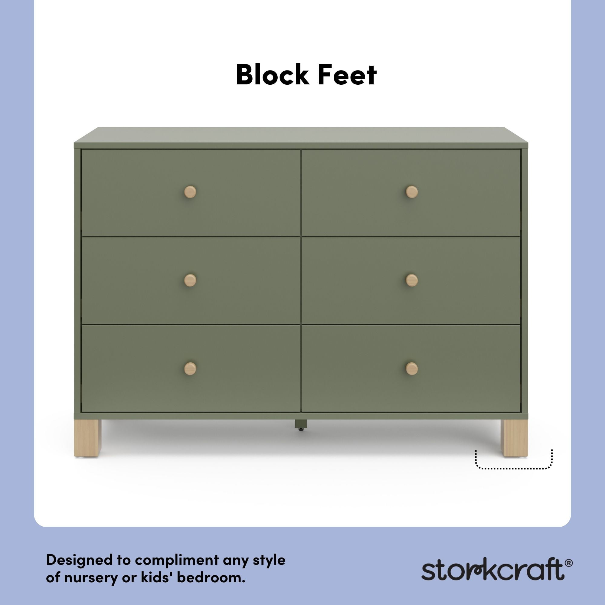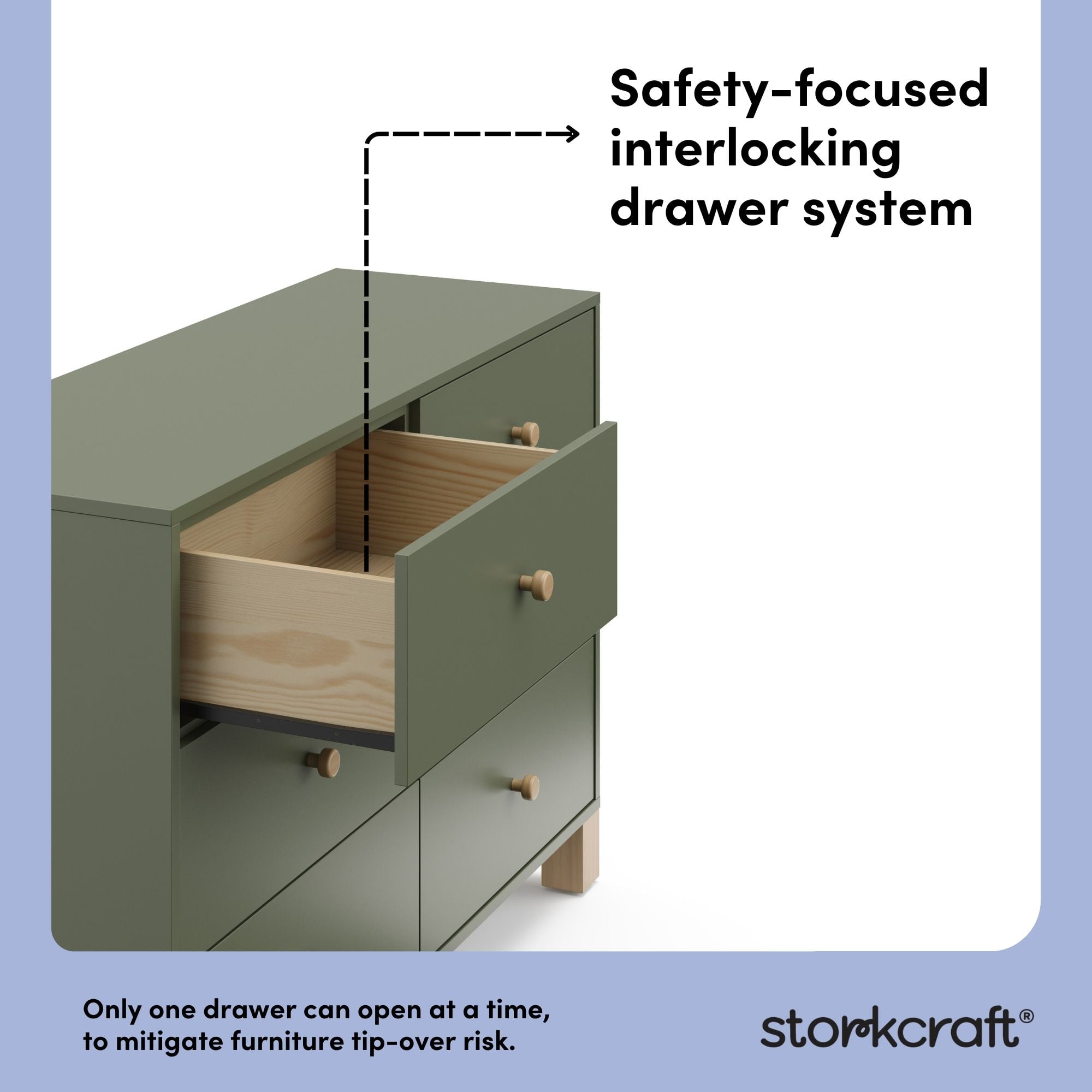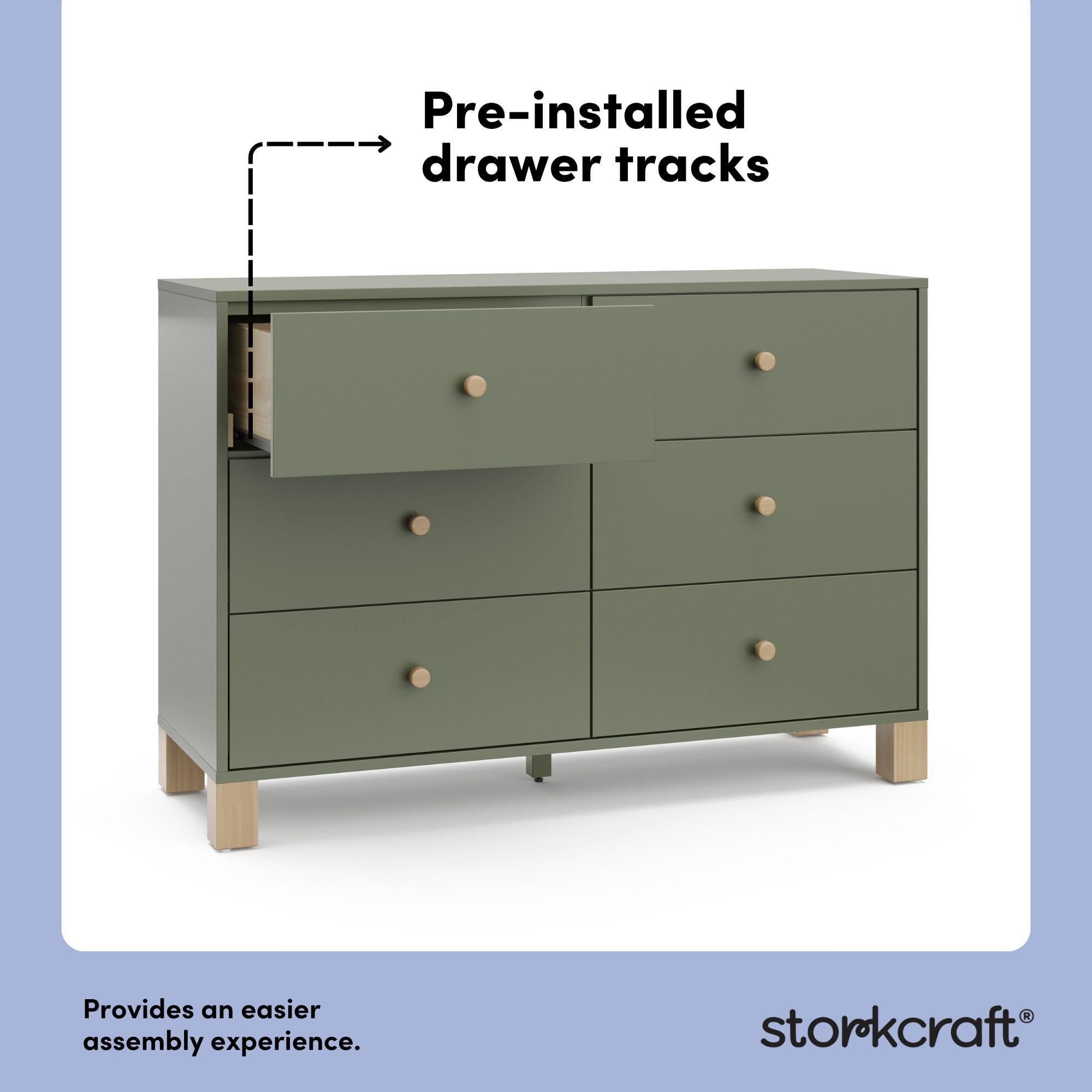 GREENGUARD GOLD CERTIFIED: GREENGUARD Gold certified products are screened for more than 10,000 chemicals and VOCs known to pollute indoor air PRE-INSTALLED DRAWER TRACKS FOR EASIER ASSEMBLY: Equipped with pre-installed drawer tracks (we did the work for you!) for an easier assembly experience; Crafted of wood framing and wood composites, and includes Euro drawer glides; Assembly required (2 people recommended) INTERLOCKING DRAWER SYSTEM & FURNITURE TIP-OVER RESTRAINT KIT: For added safety for your child, the California 6 Drawer Double Dresser includes our innovative, safety-focused interlocking drawer system and furniture tip-over restraint kit, intended to mitigate the risk of furniture tip-over when used in tandem STURDY WOOD CONSTRUCTION, TIMELESS DESIGN: With its clean lines, stylish “block” feet, and sturdy wood construction, the California is sure to add a pop of style (and storage convenience) to your nursery or kids bedroom EXPERT TESTED: Tested to meet or exceed all applicable CPSIA & ASTM International category safety standards, including the ASTM F2057 safety specification for clothing storage units PACKAGED WITH CARE: Packaging tested to reduce the risk of incidental shipment-related damage BY STORKCRAFT, SINCE 1945: Exclusively from Storkcraft Next, by Storkcraft – makers of quality nursery and kids’ bedroom furniture since 1945; Proud recipient of the Parent Tested Parent Approved (PTPA) Seal of Approval; 80 years of craftsmanship
