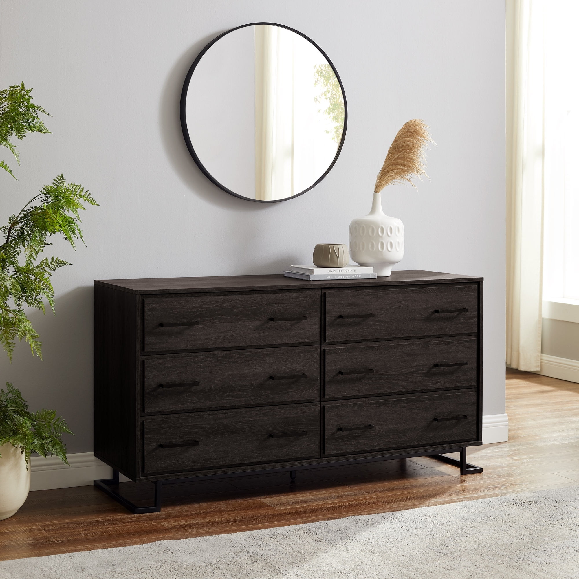 Storkcraft California 6 Drawer Nursery Wood Double Dresser, White with Driftwood