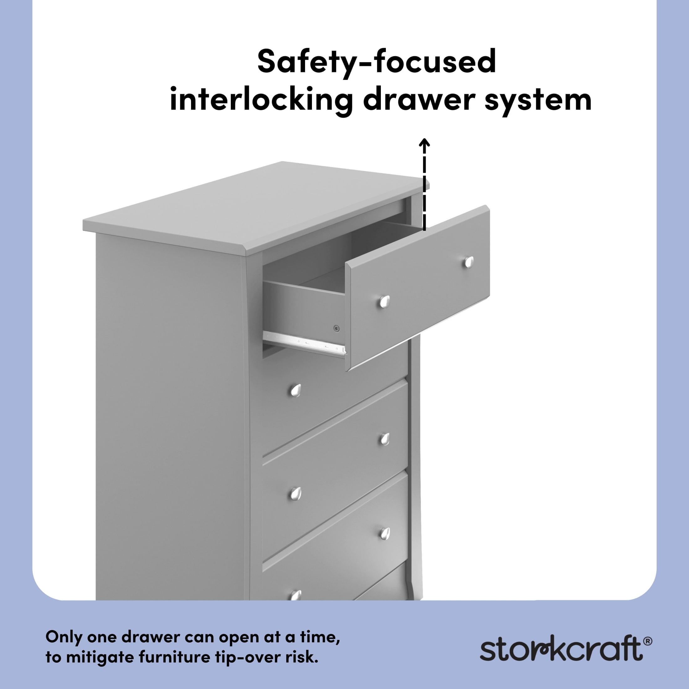 MODERN, STYLISH 4-DRAWER DRESSER: This 4-drawer dresser offers families a modern storage solution that is easy to match with any style of nursery or kids bedroom KIDS DRESSER FOR BEDROOM AND NURSERY: Crafted of wood composites, laminated with a durable, easy-to-clean PU coated surface, and includes Euro drawer glides (assembly required) GREENGUARD GOLD CERTIFIED, SAFETY TESTED: GREENGUARD Gold Certified products are screened for more than 10,000 chemicals and VOCs known to pollute indoor air; Tested to meet or exceed applicable CPSIA & ASTM International category safety standards EXPERT TESTED: Storkcraft dressers are tested at third-party, accredited laboratories to meet or exceed all applicable category voluntary and mandatory safety standards INTERLOCKING DRAWER SYSTEM, TIP-OVER RESTRAINT KIT: For added safety for your child, dresser includes innovative interlocking drawer system and tip-over restraint kit to reduce furniture tip-over hazards; Tested to meet or exceed all applicable category safety standards PACKAGED WITH CARE: Packaging tested to reduce the risk of incidental shipment-related damage AWARD-WINNING BRAND: Storkcraft is the proud recipient of the 2022 Women’s Choice Award for 9 out of 10 Customer Recommended Baby & Kids Furniture PTPA SEAL OF APPROVAL: Storkcraft is the proud recipient of the Parent Tested Parent Approved (PTPA) Seal of Approval, the leader in consumer product awards for families