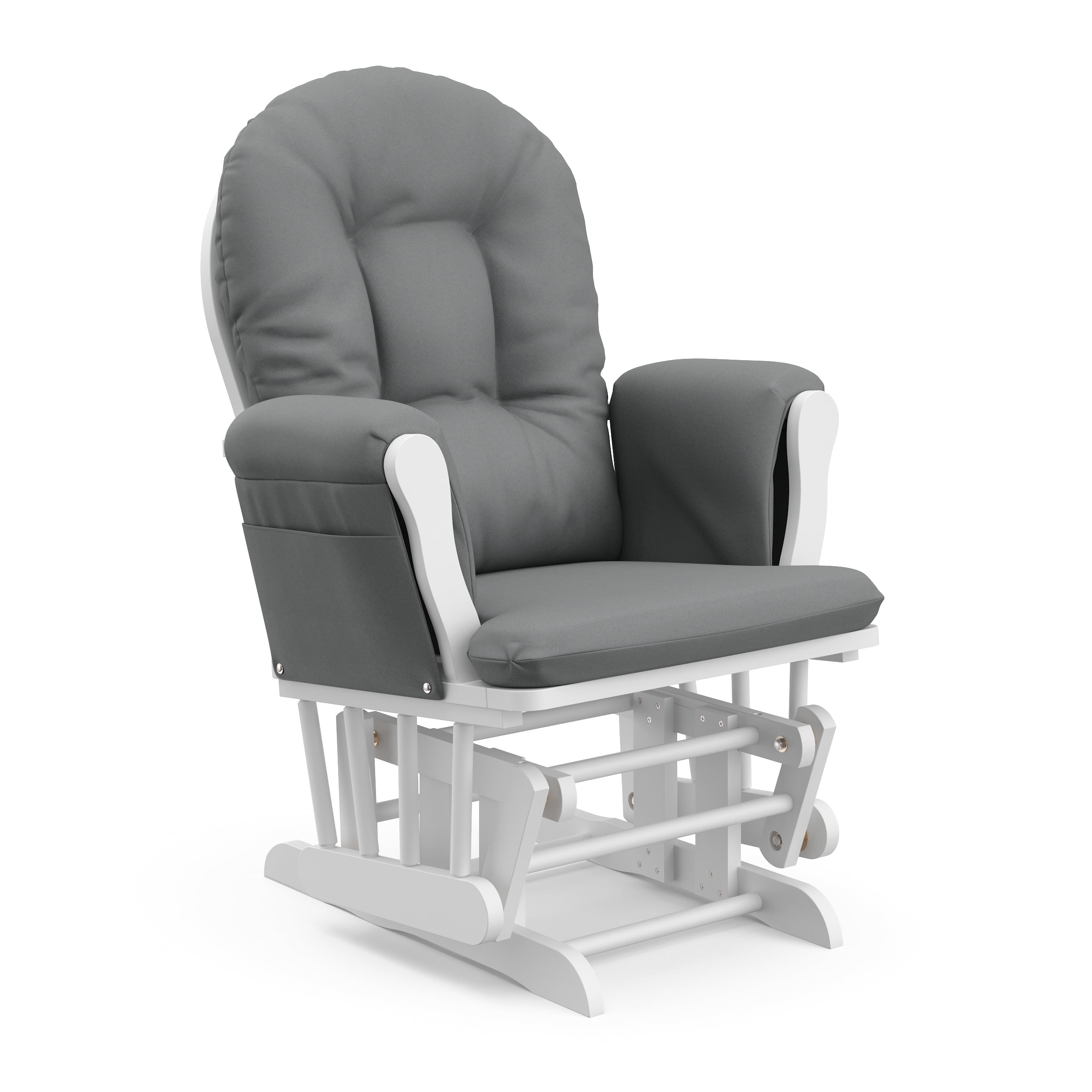 GREENGUARD GOLD CERTIFIED FOR CLEANER INDOOR AIR: The Storkcraft Hoop Glider & Ottoman is GREENGUARD Gold Certified, meaning it has been screened for over 10,000 chemicals and VOCs known to pollute indoor air, contributing to cleaner, healthier air SOLID WOOD CRAFTSMANSHIP, LONG-LASTING DURABILITY: Our smooth-gliding, award-winning, GREENGUARD Gold Certified, all-in-one nursery glider & ottoman set is quality-crafted from solid wood, making it the perfect addition to your nursery or home SIDE POCKETS FOR CONVENIENT STORAGE: Each padded arm cushion on the Storkcraft Hoop Glider & Ottoman includes a convenient side storage pocket to conveniently store any reading materials, electronics, or nursery essentials that you need to keep within arm’s reach PRODUCT DIMENSIONS: Maximum recommended weight (250 pounds); Width (29.92 in); Height (39.96 in); Depth (30.31 in); Seat width (17.32 in); Seat depth (18.7 in); Seat height (17.5 in); Ottoman width (19.69 in); Ottoman height (14.37 in); Ottoman depth (15.35 in) MULTI-AWARD-WINNING NURSERY GLIDER & OTTOMAN SET: A repeat winner and top-rated nursery & glider ottoman set, the Hoop is quality-crafted by Storkcraft – makers of quality nursery and kids bedroom furniture, since 1945; Easy assembly required ASSEMBLY REQUIRED: This product requires assembly; base of glider made of solid wood material MULTIPLE COLORS: Designed to match any nursery, this glider is available in multiple cushion and base colors so it will match your style and blend seamlessly with the rest of your nursery furniture BY STORKCRAFT, SINCE 1945: Exclusively from Storkcraft – makers of quality nursery and kids’ bedroom furniture since 1945; Proud recipient of the Parent Tested Parent Approved (PTPA) Seal of Approval; 80 years of craftsmanship