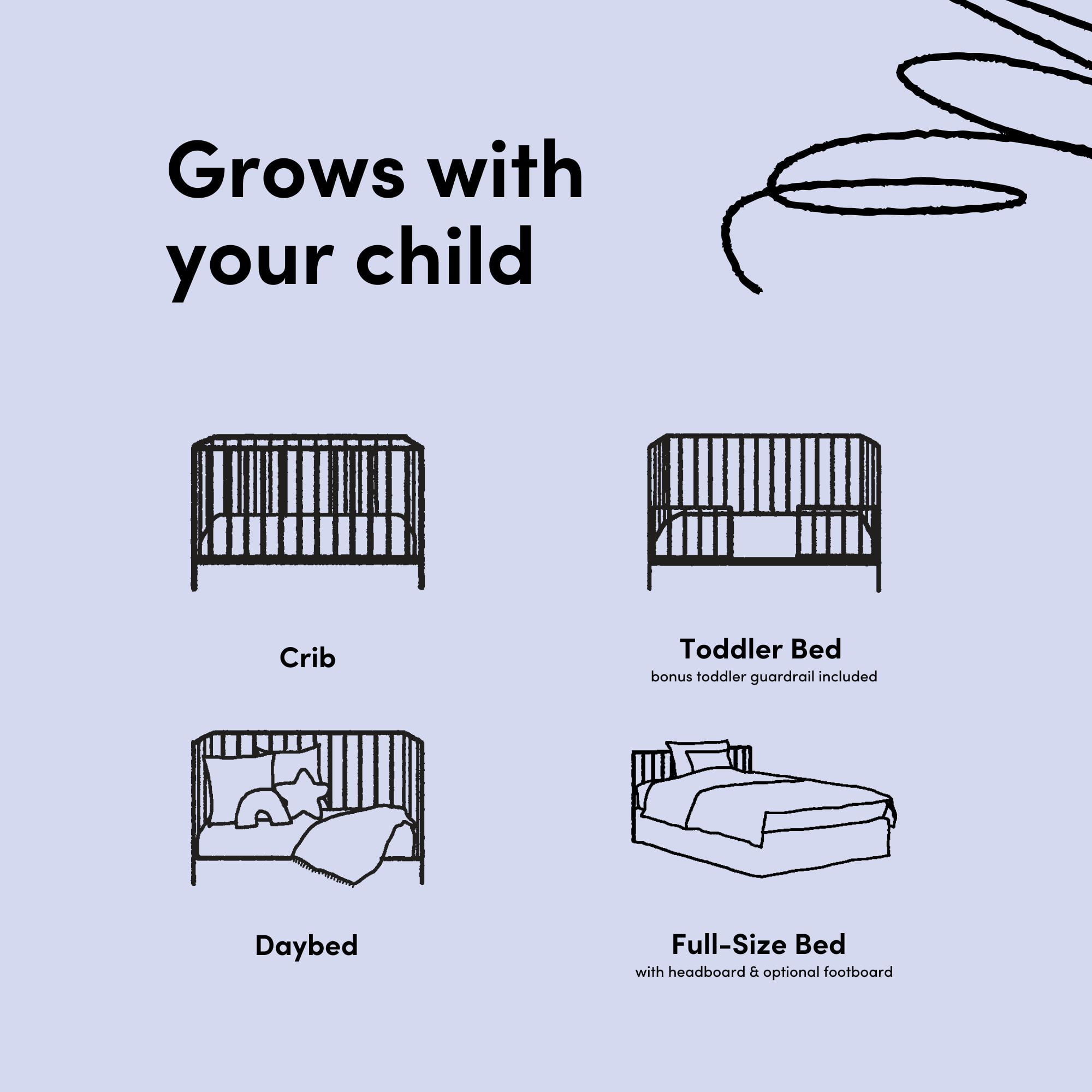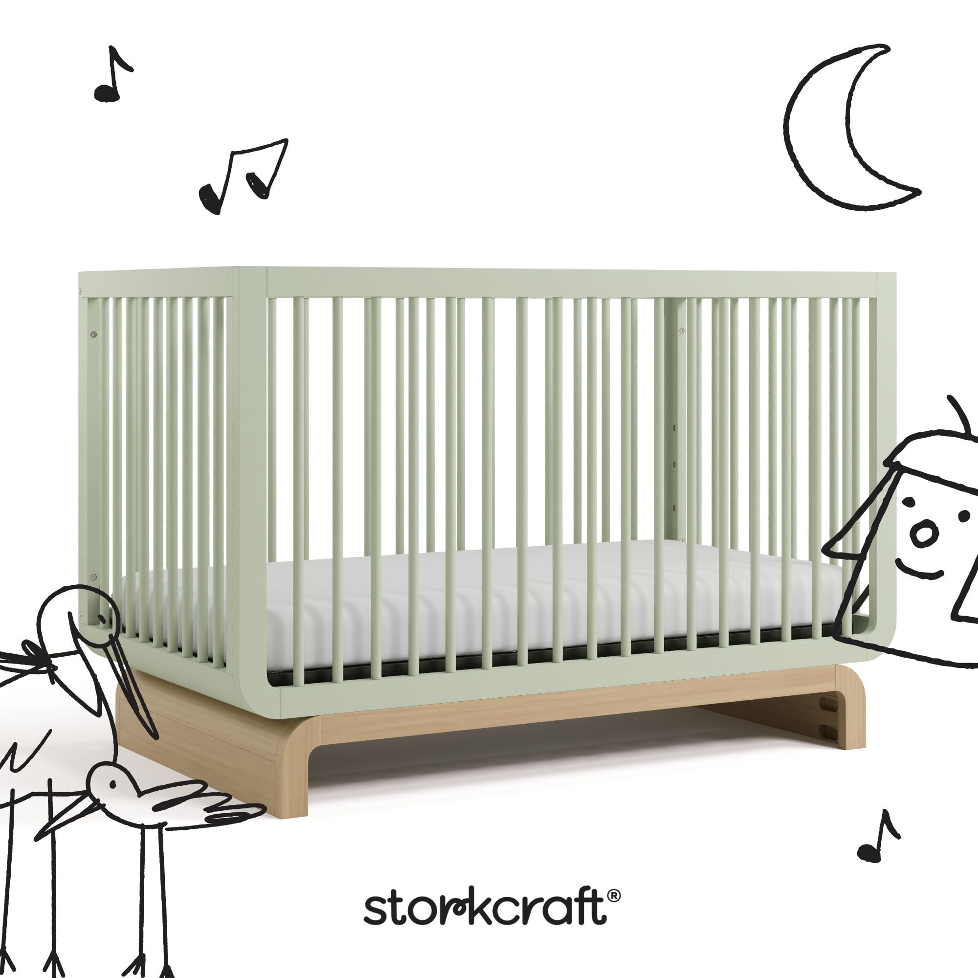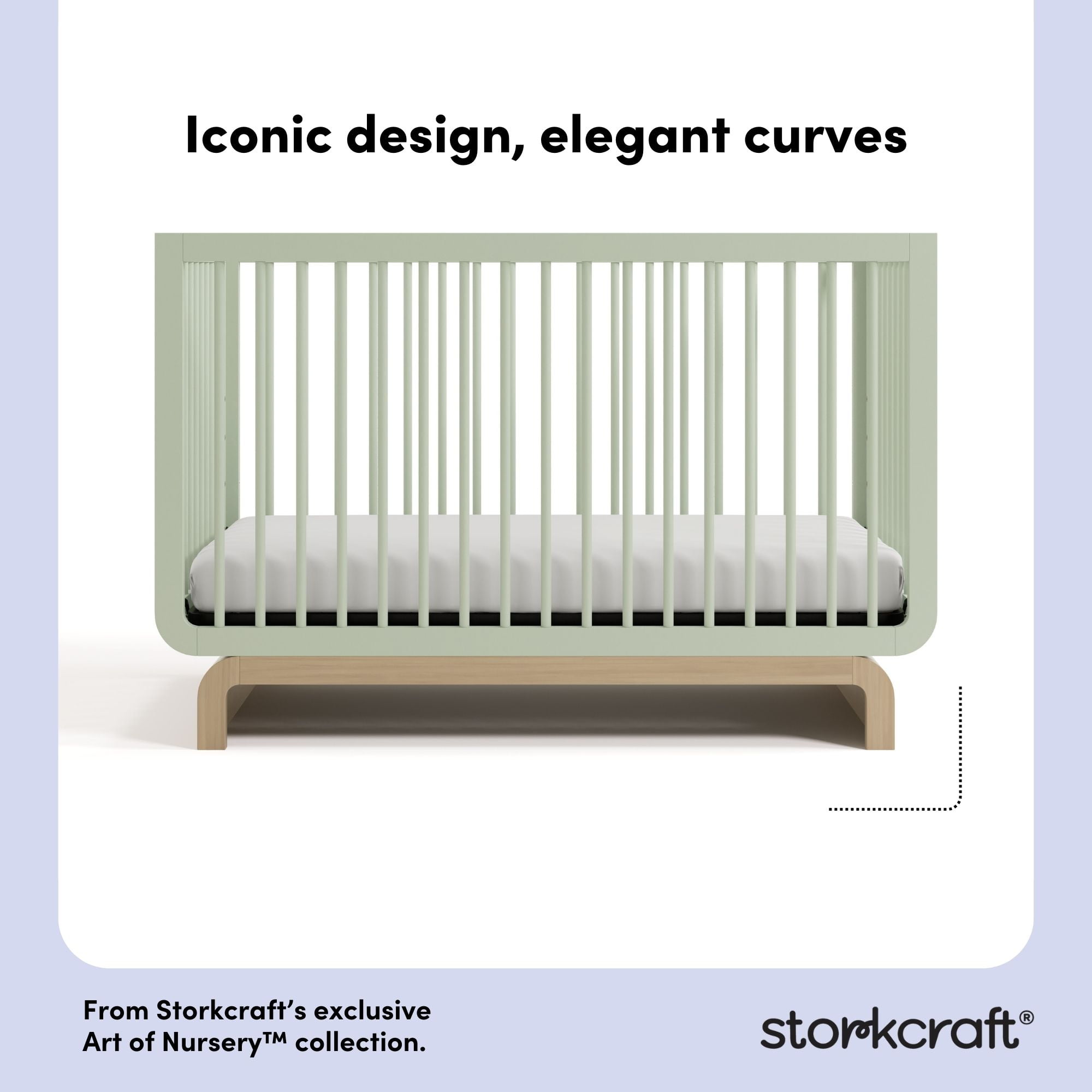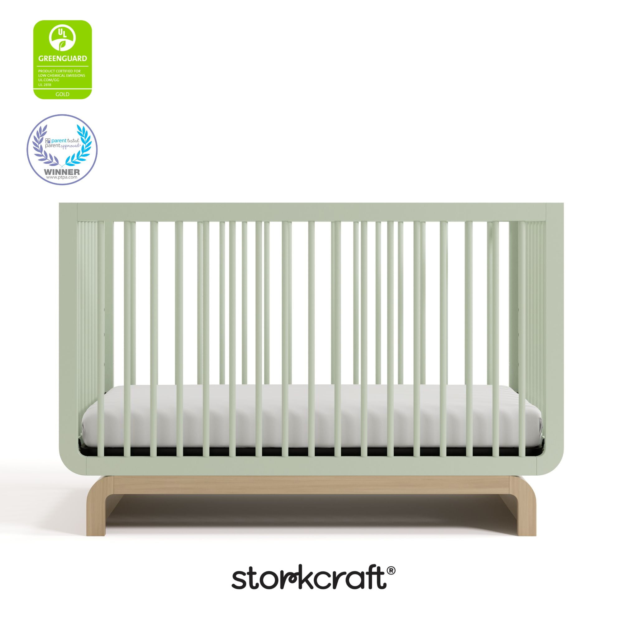 Introducing the Storkcraft Santorini Deluxe 5-in-1 Convertible Crib with Bonus Toddler Guardrail – our most stylish crib yet. To make the Santorini even more special, it includes a toddler safety guardrail — allowing you to transform it into a toddler bed, whenever your child is ready to transition to their first “big kid” bed. GREENGUARD Gold Certified and a Storkcraft original design, the elegant Santorini Crib is named after one of the most beautiful places in the world, and is a dreamy blend of quality craftsmanship, timeless beauty, and rounded shapes. The Santorini is GREENGUARD Gold Certified, crafted from solid wood, and its applied finish has been tested to meet or exceed the applicable ASTM and CPSIA safety standards. The Santorini is Baby Safety Alliance Verified — meaning it’s been expert tested by third-party, accredited laboratories to meet or exceed all of the applicable category voluntary and mandatory safety standards. Designed to adapt to your growing baby, the Santorini includes a bonus toddler safety guardrail that spans half of the crib, and its adjustable mattress support base has 4 different height options, so the mattress support base’s position can be lowered as your child grows (please note, this crib may only be used until your child can easily climb out or is taller than 35 inches (89 cm). To support your child’s journey from babyhood to toddlerhood (and beyond), the Santorini is able to be converted from a crib to a toddler bed (toddler safety guardrail included), daybed, and full-size bed with headboard and optional footboard (compatible Storkcraft full-size bed conversion kit sold separately). The Santorini is part of the Art of Nursery line of products — hand-sketched, elevated nursery and kids’ bedroom pieces designed with love and inspired by the beauty and landscapes around us. Quality-crafted with premium materials and appointed with luxurious details, Art of Nursery is an exclusive Storkcraft collection, designed in-house, that personifies elegance, imagination, and craftsmanship. These grow-with-me pieces are brought to life — with love — by real parents for real families, and are smartly engineered to adapt to your growing baby throughout childhood’s ever-changing stages. The Storkcraft Santorini Deluxe 5-in-1 Convertible Crib with Bonus Toddler Guardrail is designed to accommodate any standard full-size crib & toddler mattress (mattress sold separately — we recommend any Graco mattress). Storkcraft is the proud recipient of the Parent Tested Parent Approved (PTPA) Seal of Approval for nursery and children’s bedroom furniture, 2023 PTPA Top Product Award, and the 2023 Women’s Choice Award for 9 out of 10 Recommended Baby & Kids Furniture. Backed by a 1-year limited manufacturer’s warranty. Assembly required. Mattress sold separately. Complete the Storkcraft Santorini collection with the Storkcraft Santorini 6-Drawer Double Dresser, Storkcraft Santorini 3-Drawer Chest with Changing Topper, and Storkcraft Santorini Power Recliner Swivel Glider .