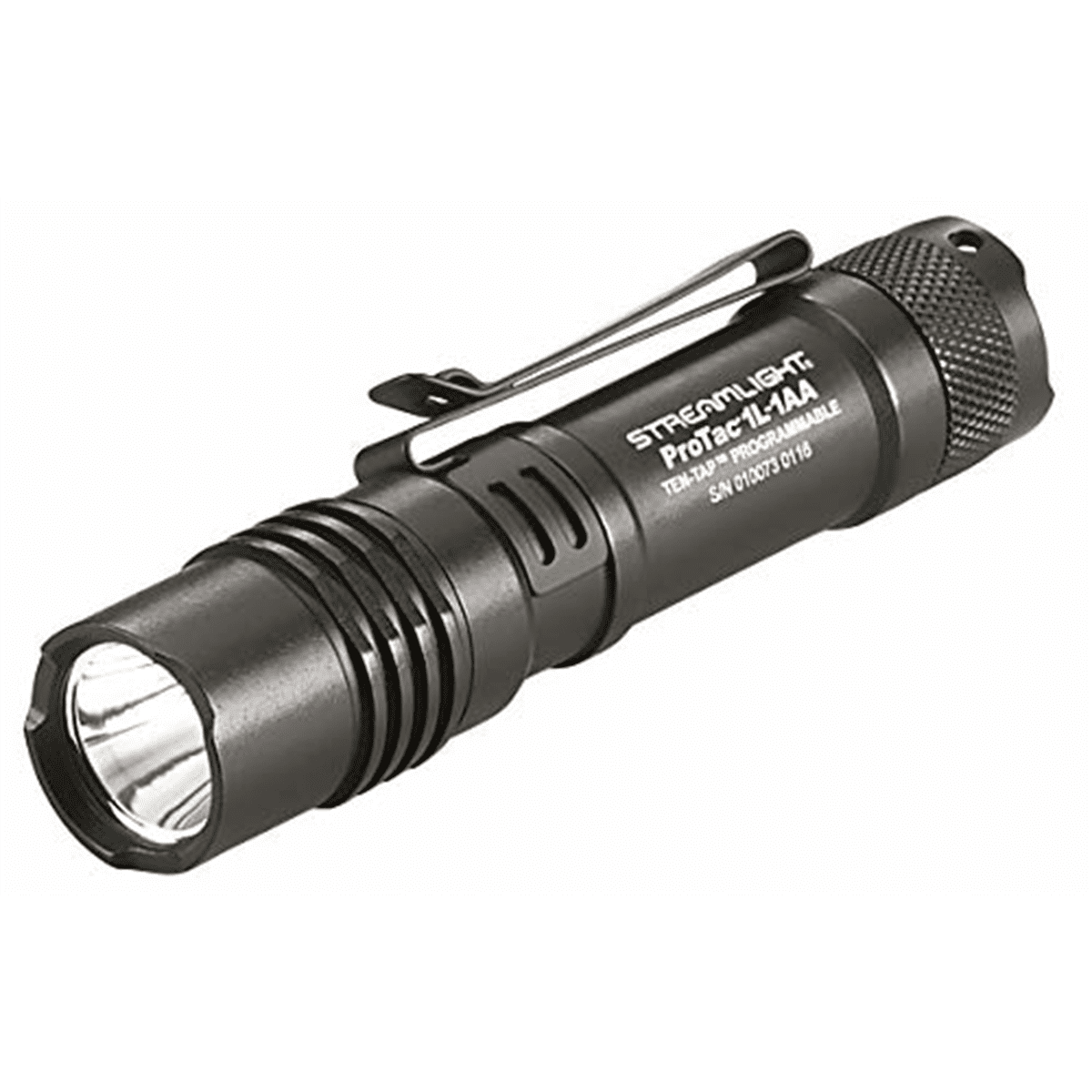 Ten-Tap Programming: Choice of three operating modes: 1.high/strobe/low; 2. high only; 3. low/high. Dual Fuel: Uses one “AA” alkaline or CR123A battery (both included). Durable, anodized aluminum construction. Multi-function push button tail switch. Removable, reversable pocket clip also attached to visors, etc. For hands-free use.