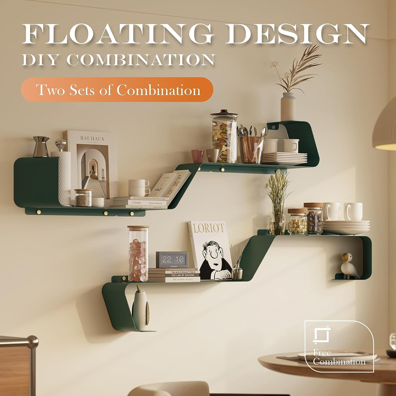Multifunctional Floating Shelf: This unique piece offers an inventive design flexible configuration to fit any size of wall space. Transform wasted wall space into a spacious storage area. These shelves, a bedroom showcase for prized items, a living room display for photos, a bathroom organizer for toiletries, or a kitchen rack for spices and so on. It doesn’t just offer organization, it elevates your living space, redefining the aesthetic of your home. Home art that shows personality and style: The unique design of these three floating shelves, and five different color, transforms them into art. Be it the profound black, the pure white, the vibrant orange, the refreshing green, or the understated grey. Choice the color which suitable for your room. each color acts like an artist’s brushstroke, bringing unlimited imagination and potential to your space. Embrace home art that truly reflects your personality and style. Free Design and Easy Installation: The simple and stylized 3-piece shelf gives you endless creative freedom. According to your personal preference, you can freely match these sets of parts to create your unique decorative style, each combination is a reinterpretation of the wall space, is a deep love and desire for life. All you need is a drill and follow our instructions to install your unique floating shelf in 3 steps! High Quality Metal Materials Easy to Clean: The floating shelf from premium metal, it is not only easy to clean but remarkably durable. Its surface features an anti-rust coating for excellent oxidation resistance. The robust metal construction ensures it can bear significant weight without deformation. Just wipe gently with a rag, you can make it restore the original luster. Customer Service: We’re so confident about our top-quality floating shelves that if you are not completely satisfied with our floating shelves, you’ll get every penny refunded to you. We’re also here to support you if you have any questions or queries, please get in touch and we’ll gladly help. We are looking forward to your order! Important: Our floating shelves are meant to be installed on solid wood studs or solid concrete wall for best and secure results.