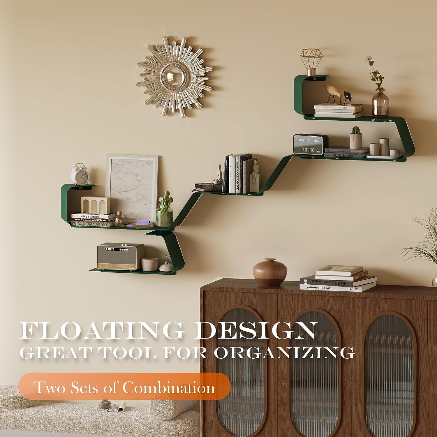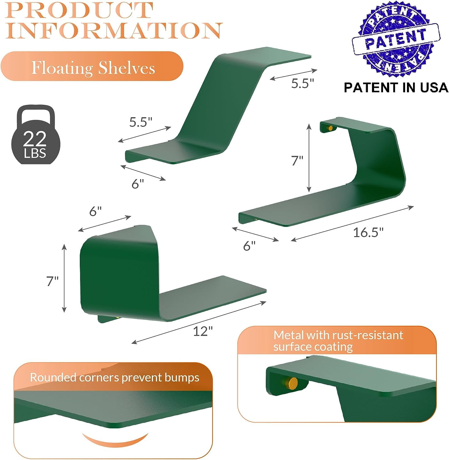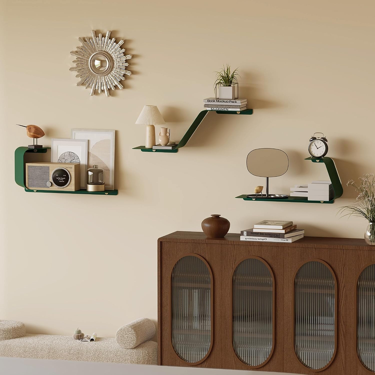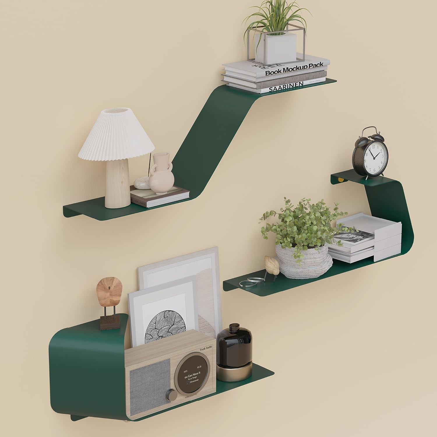 Sttoraboks Floating Shelves, Wall Shelf, Set of 3 Wall Mounted Metal Shelves with DIY Design for Wall Storage,Green
