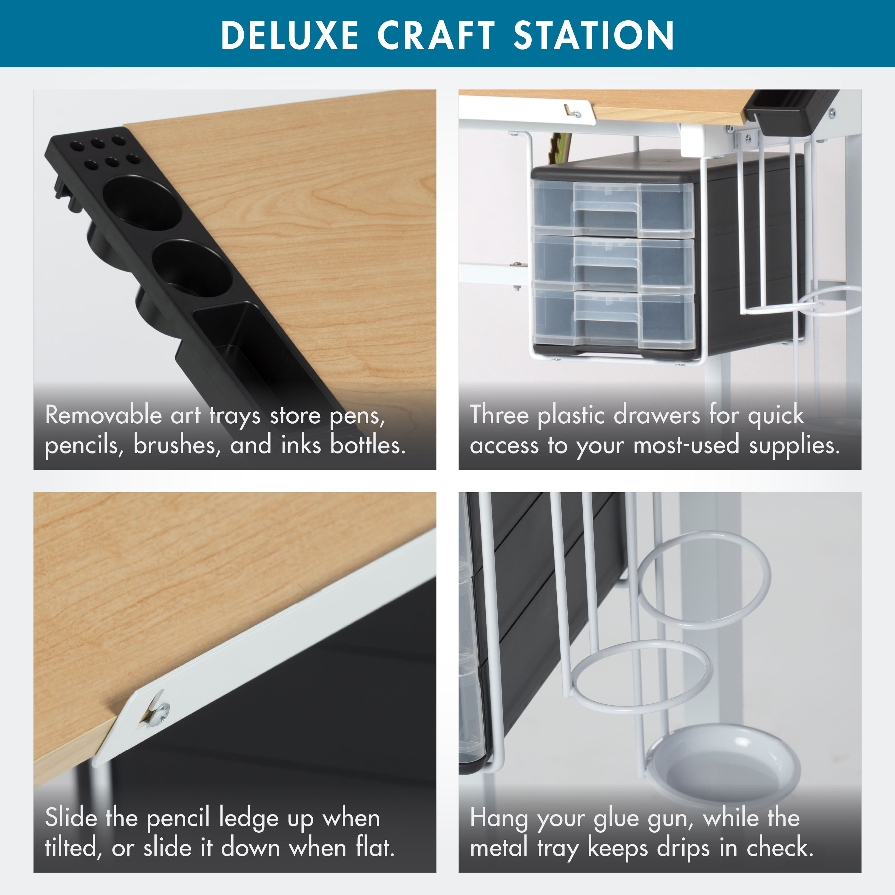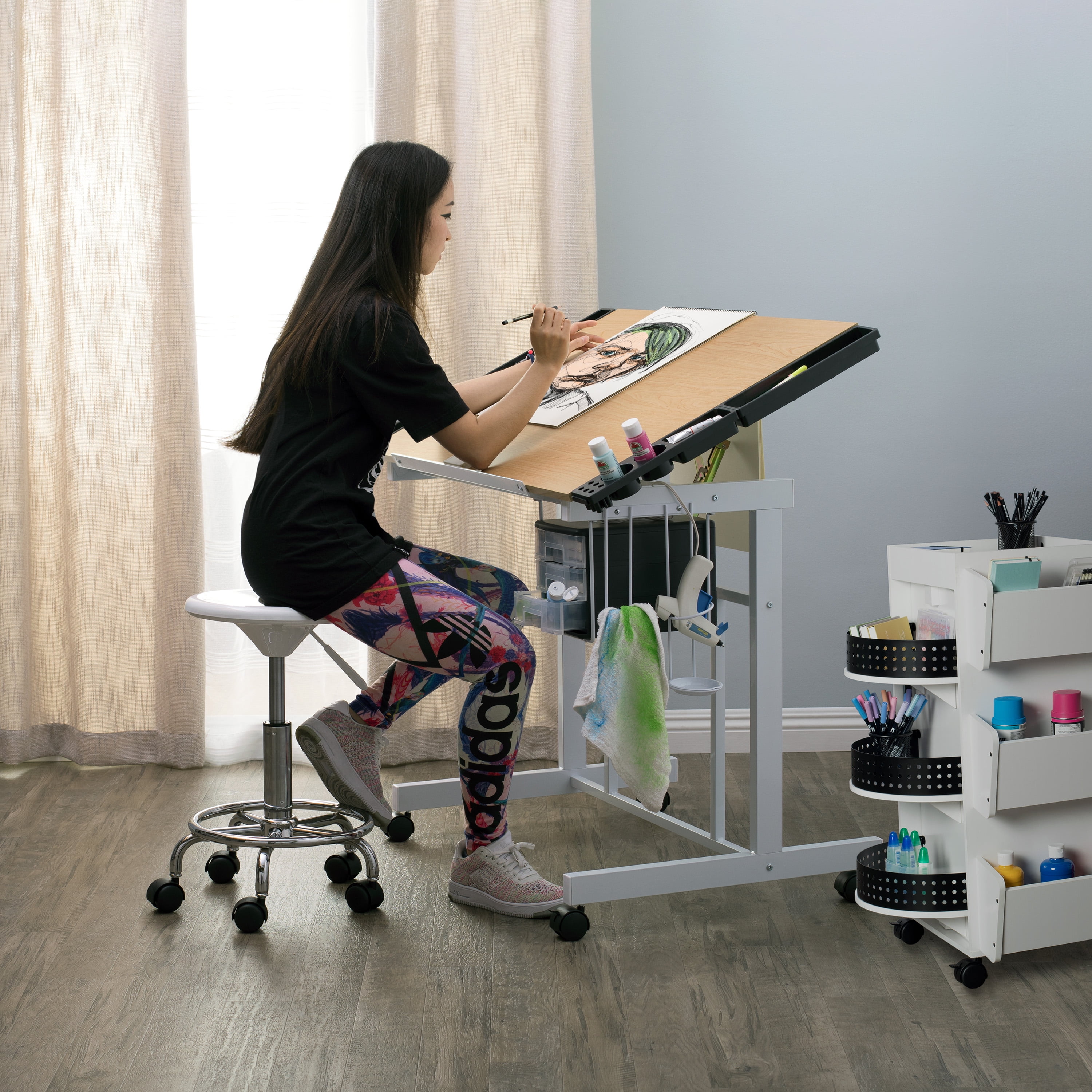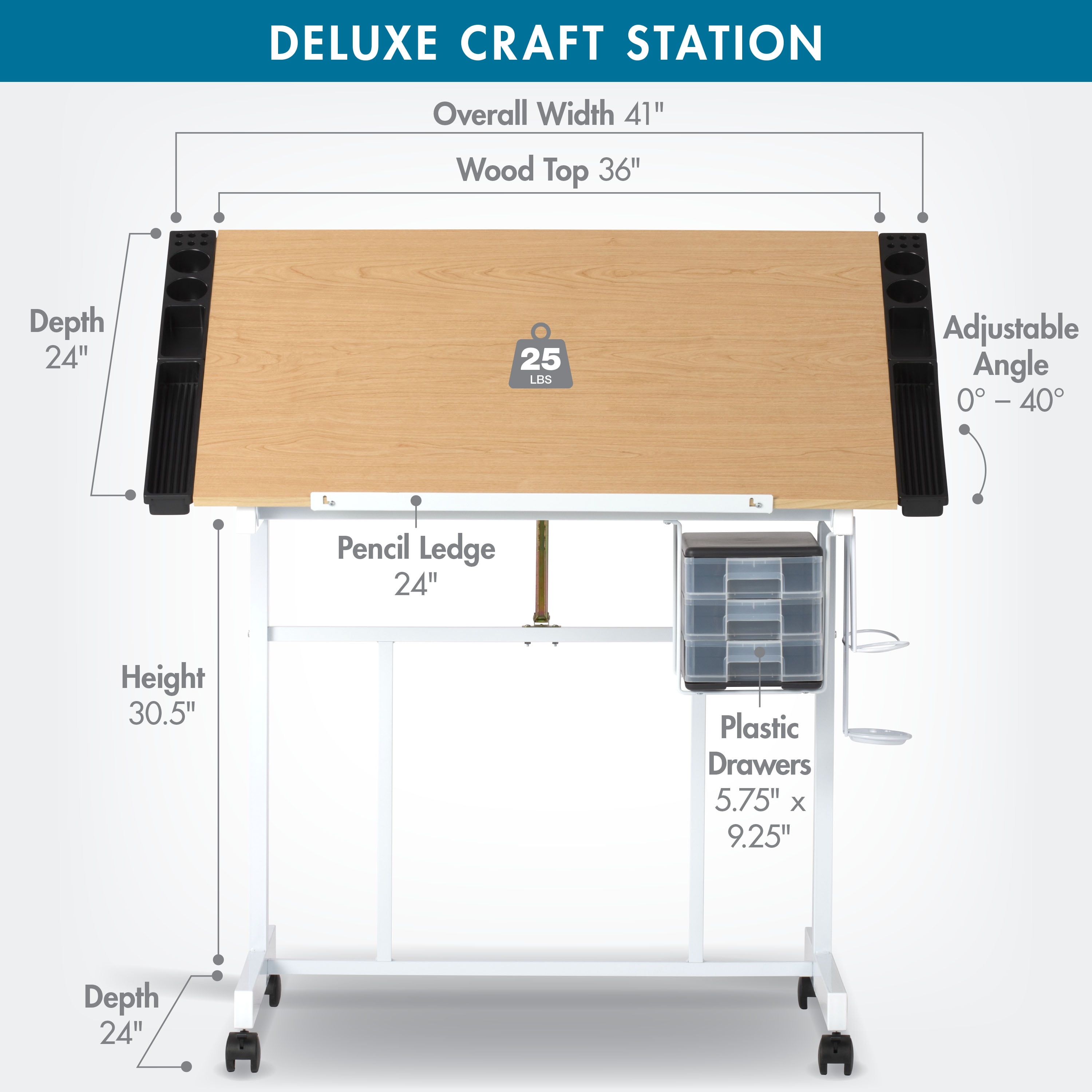 Studio Designs Deluxe Craft Station Mobile Drawing Craft Desk with Adjustable Top and Storage White/Maple